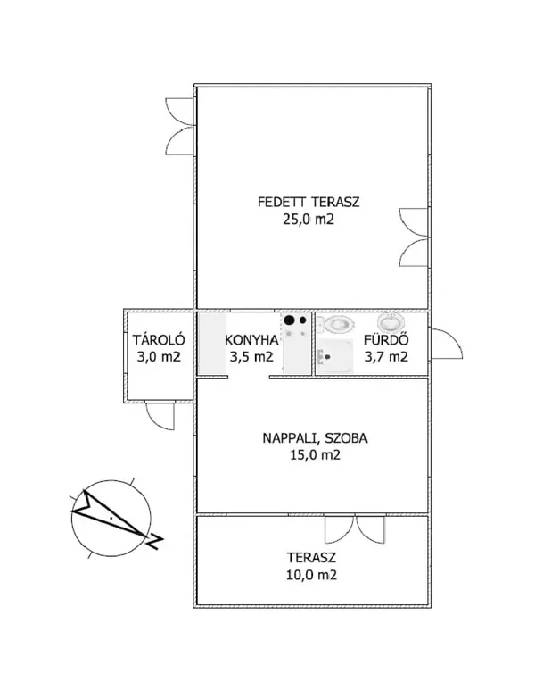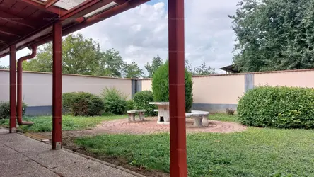 A telken elhelyeztek egy nagyon szép állapotú, minőségi kerti faházat, amely szoba-konyha helyiségből (18,5m2); kívülről megközelíthető zuhanyzós fürdőszobából (3,7m2), egy 3m2-es tárolóból áll, illetve egy fedett (25m2) terasz és a terasz (10m) is tartozik hozzá. A tulajdonosok hétvégi háznak, vagy vendégek fogadására használták korábban. Fűtése elektromos panel és hűtő-fűtő klíma.