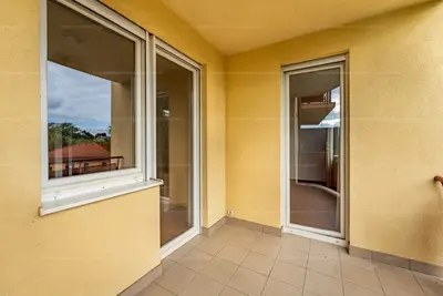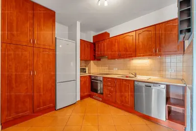 Eladó sorba került ez az első emeleti, utcai nézetű, 60 négyzetméteres (7 négyzetméter erkély), 2 különnyíló szobás, étkezős konyhás, kádas fürdős, tárolós lakás egy rendezett házban a Taraliget lakóparkban.