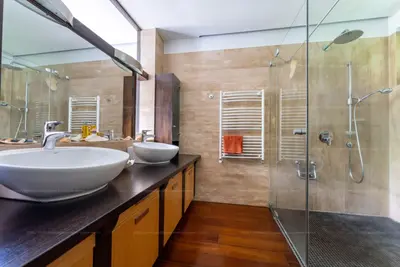 A ház kivételes fekvésének köszönhetően benapozott és világos, de nincs kitéve az állandó napsütésnek – árnyékos teraszai és a környező növényzet révén kellemes mikroklímát biztosít.
