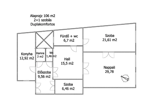 - 106 sqm - 2 bedrooms, 2 halls, 2 rooms, 1 hall, 1 hall, 2 bedrooms