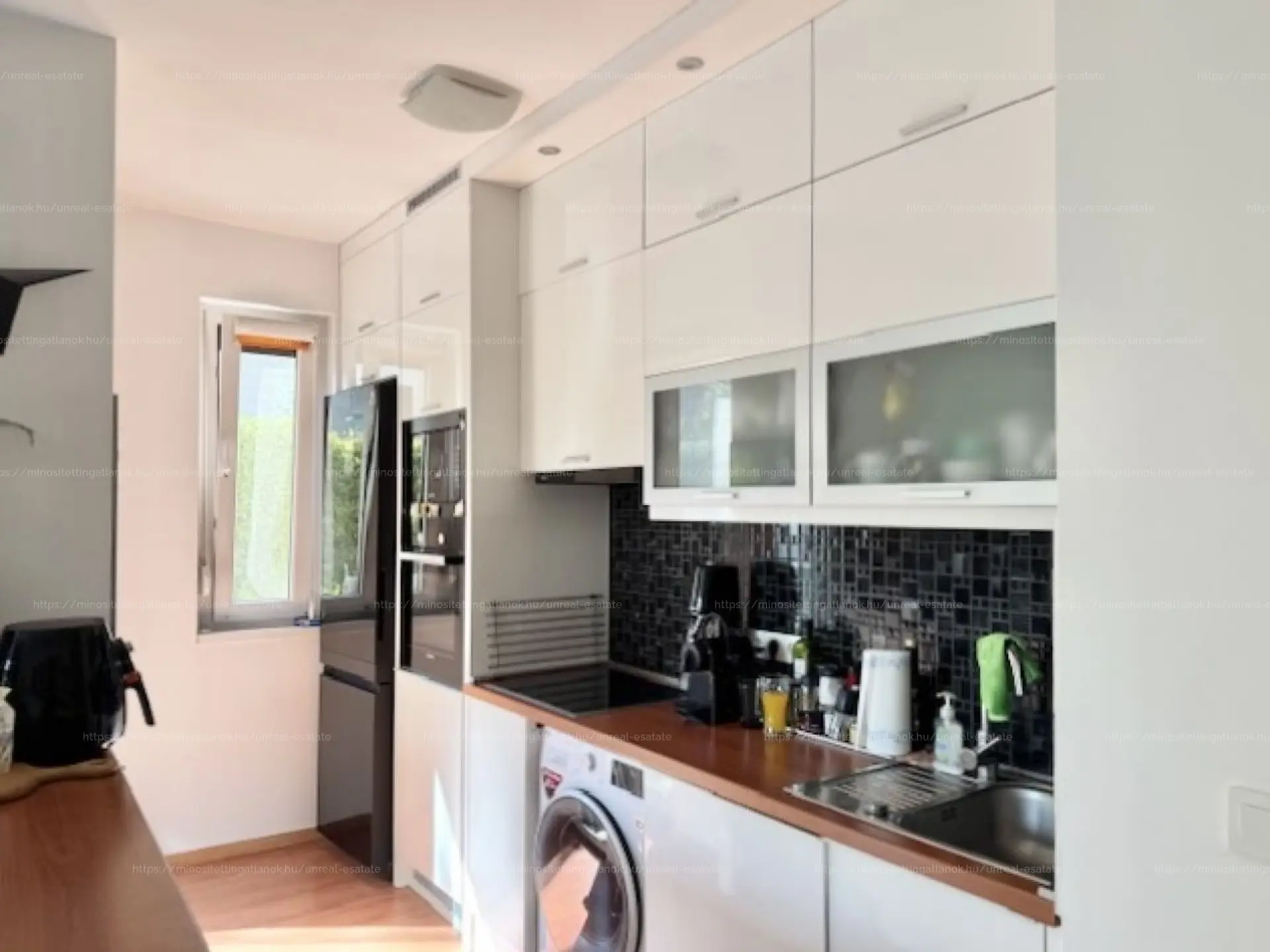Extrák: Mozgatható, üvegezett télikert fűtőpanelekkel és 3 db elektromosan mozgatható nagyméretű napernyő, amely teljes árnyékolást biztosít a terasz felett. A lakás fenntartása rendkívül kedvező: nincs gázbekötés, a rezsi alacsony (kb. 8 000 Ft/hó), és az energetikai besorolás kimagasló (A).