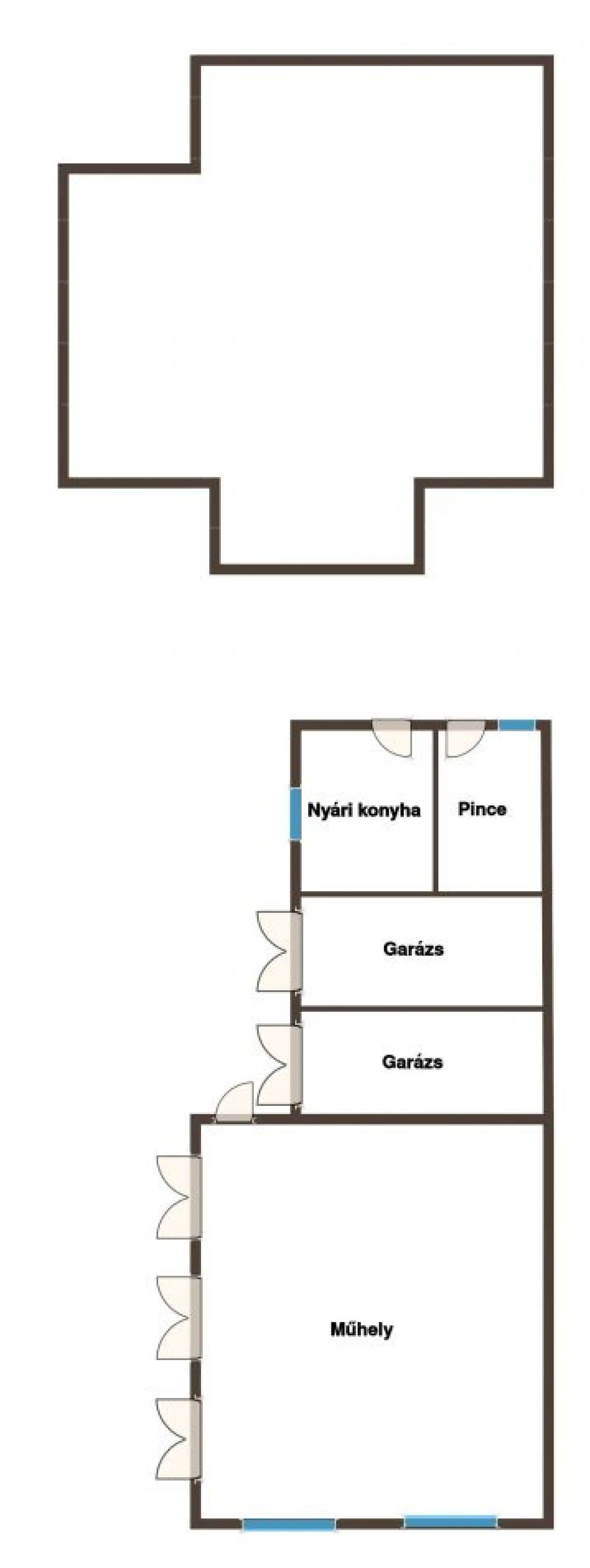 Melléképület nyári konyhával, garázsokkal és műhellyel