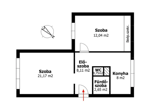 Elosztása: előszoba, 2 különnyíló szoba, konyha + étkező, fürdőszoba káddal, külön WC.