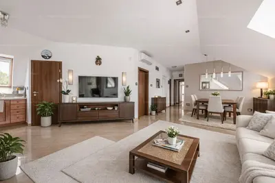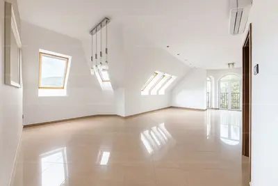 A XI. kerület elegáns, villaövezeti részén, Sasadon található ez a bruttó 100 m²-es, teljes szintet elfoglaló, panorámás lakás, amelyet a nyugalom és a kiváló fényviszonyok jellemeznek.
