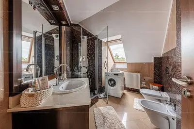 Két különálló, teljes felszereltségű fürdőszoba, bidével és WC-vel, valamint egy kamra is a lakók kényelmét szolgálja. A klimatizálásról két légkondicionáló, a fűtésről egy új Bosch kondenzációs kazán gondoskodik.