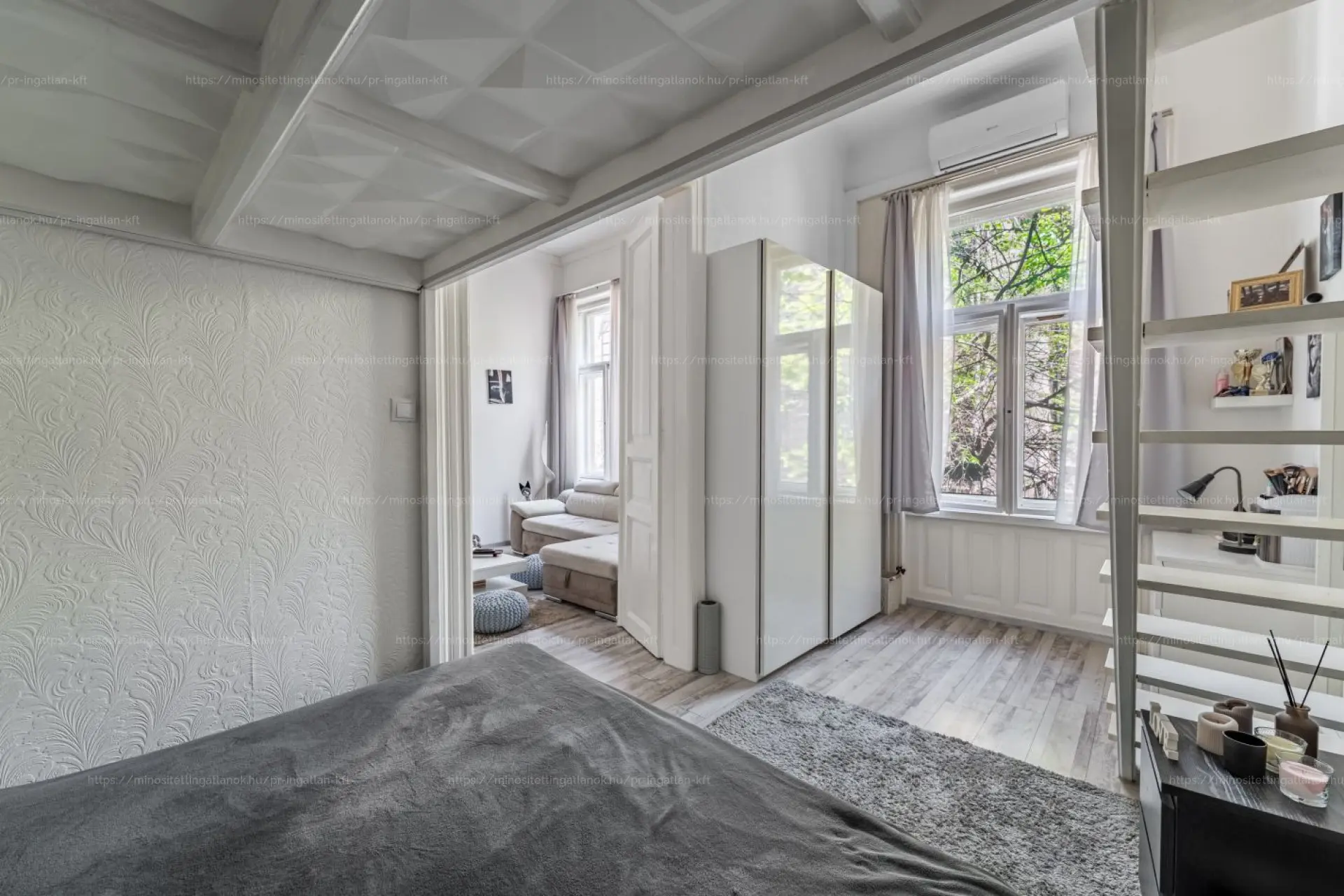 Az ingatlan egy tágas nappaliból, két külön nyíló hálószobából, modern, különálló konyhából étkezővel, valamint gardróbszobából áll.