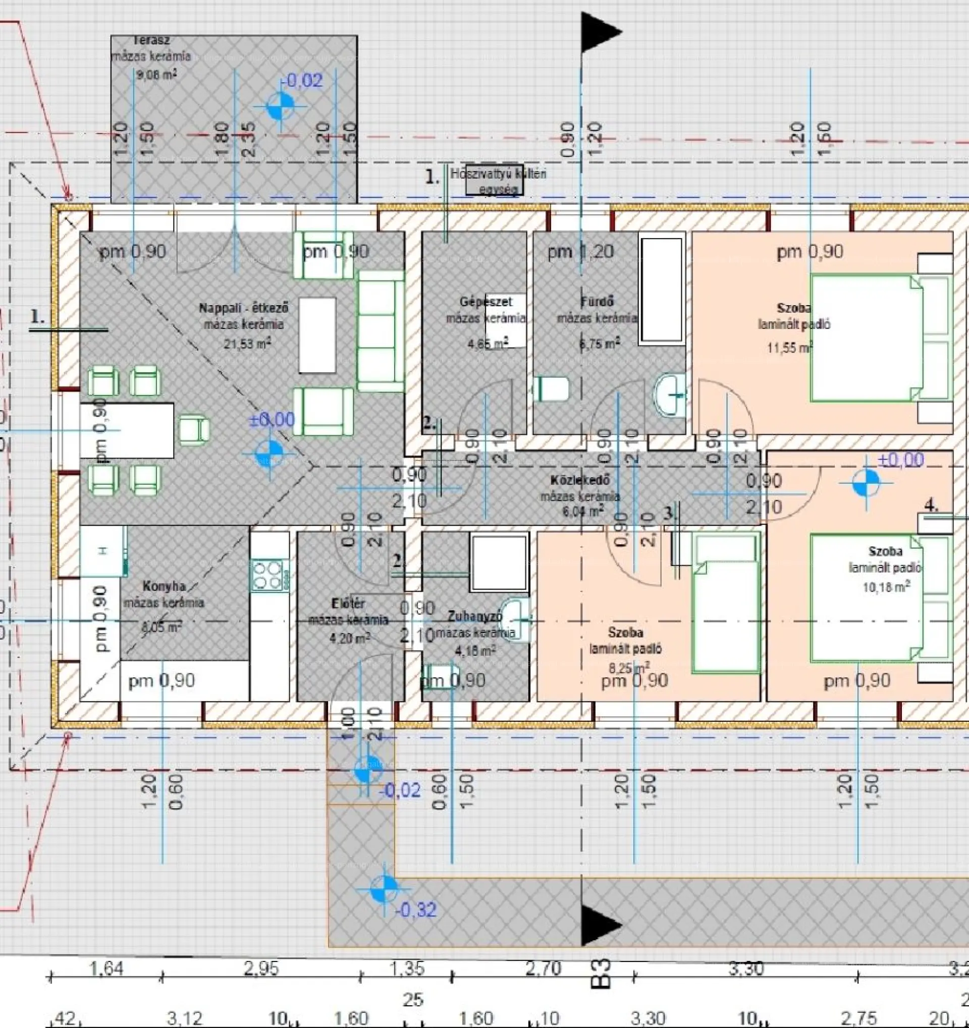 3. lakás: 85,20 m2 + terasz 9 m2 + 143 m2 saját használatú telek terület = 99.990.000 Ft