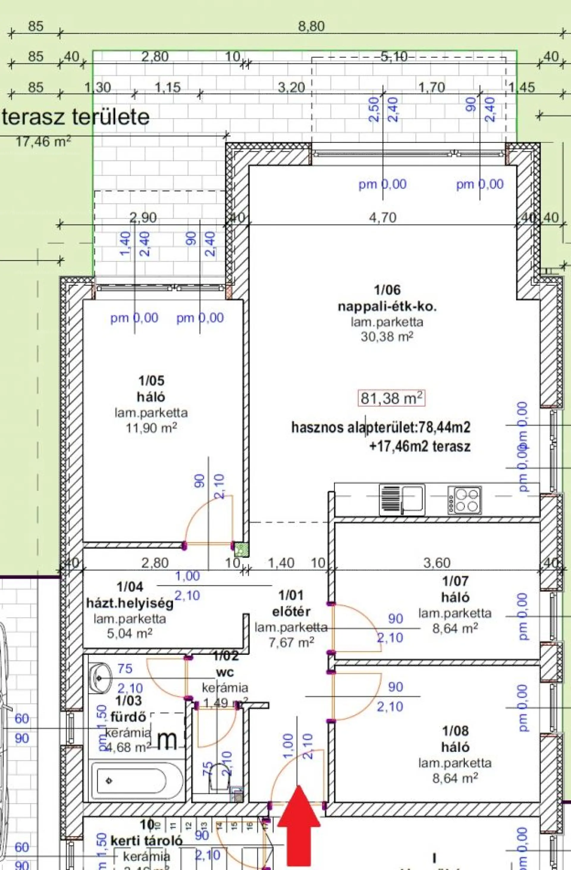 Ez a 78 m²-es, 4 szobás otthon egy 17 m²-es terasszal és egy lenyűgöző, 353 m²-es SAJÁT használatú kerttel rendelkezik (melynek ára +8 M Ft)! Élvezze a kerti sütögetéseket, a gyerekek játékát, vagy csak a reggeli kávét a zöldben, közvetlenül a lakásból kilépve.