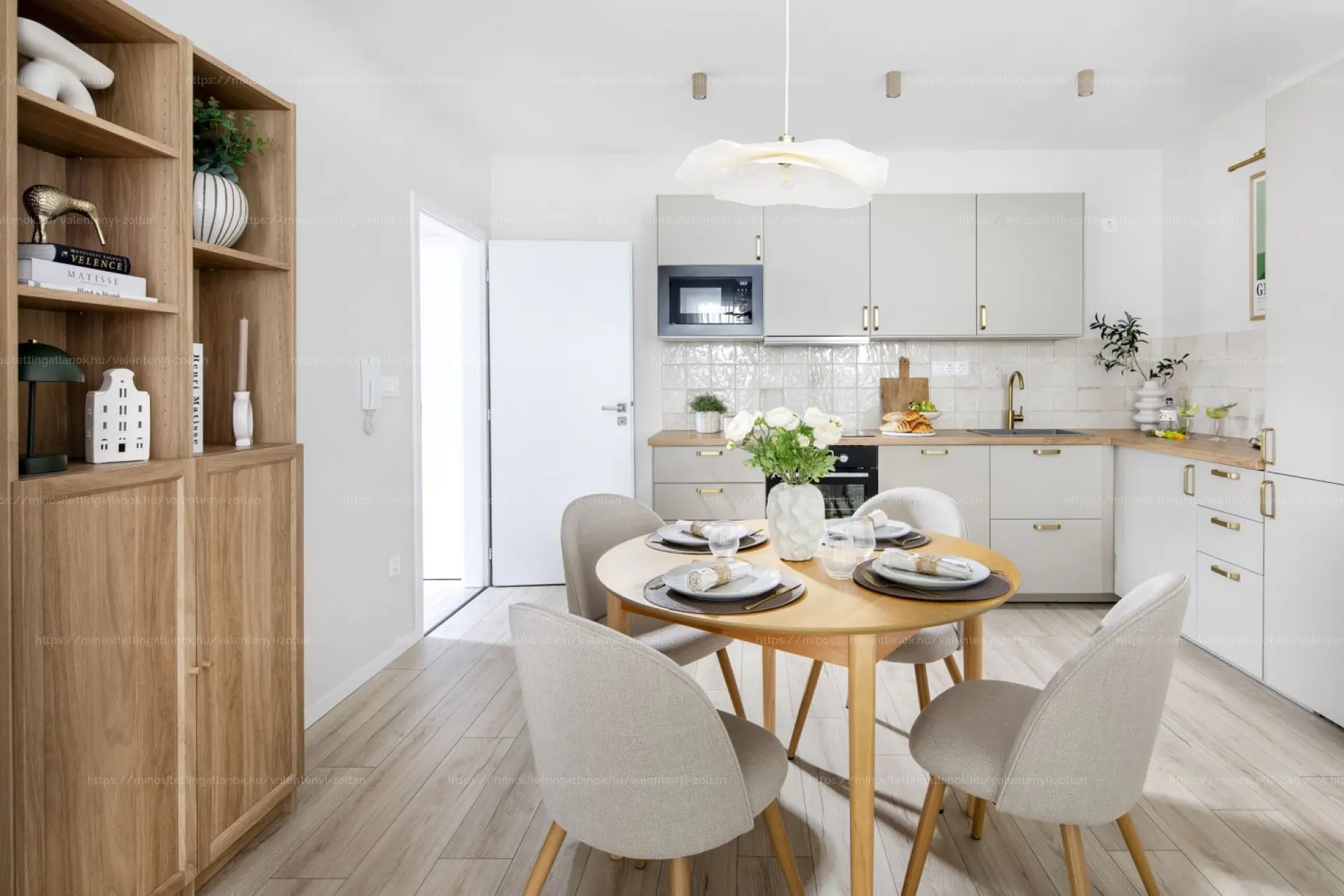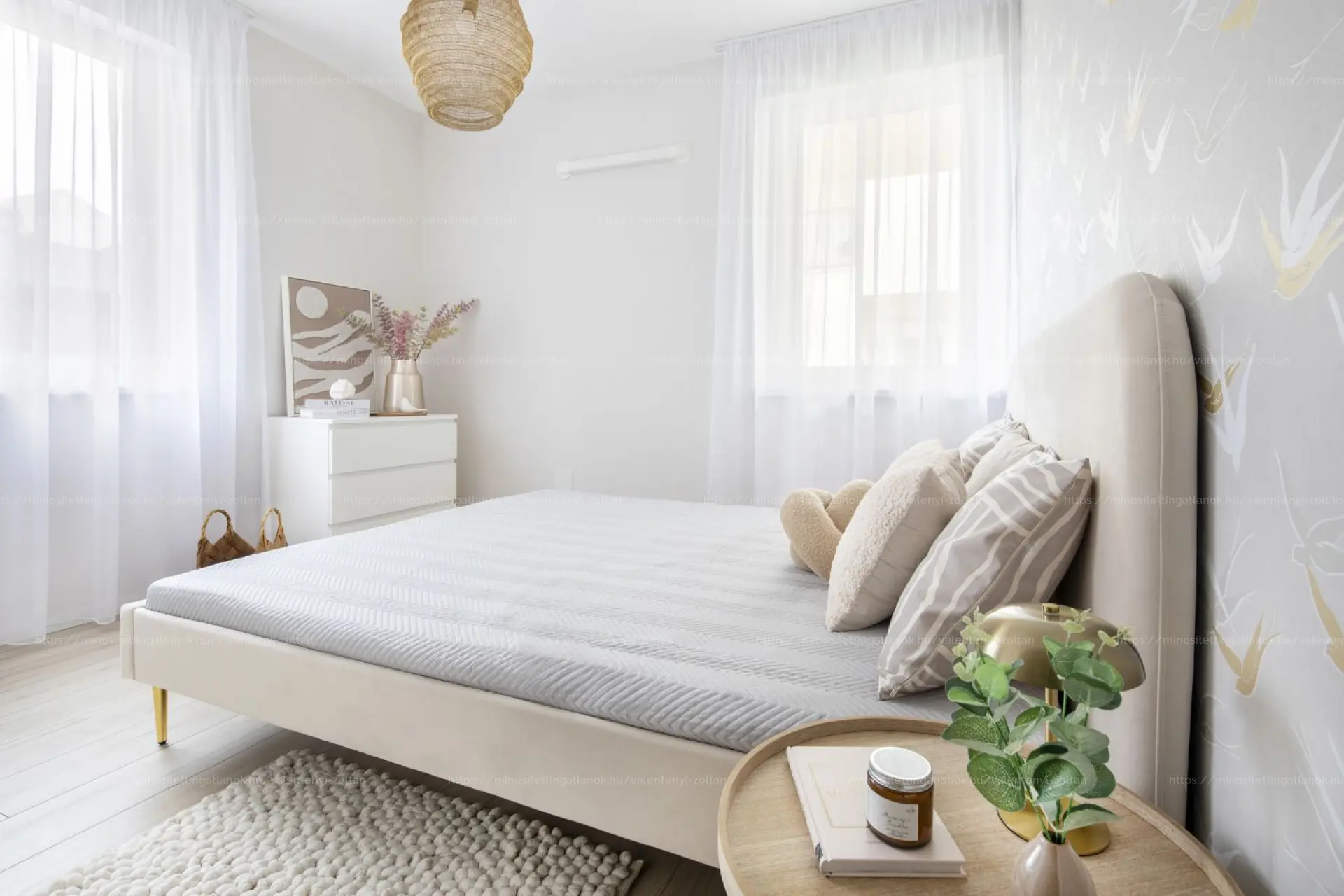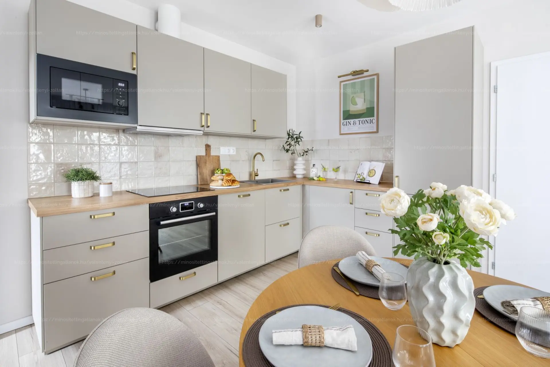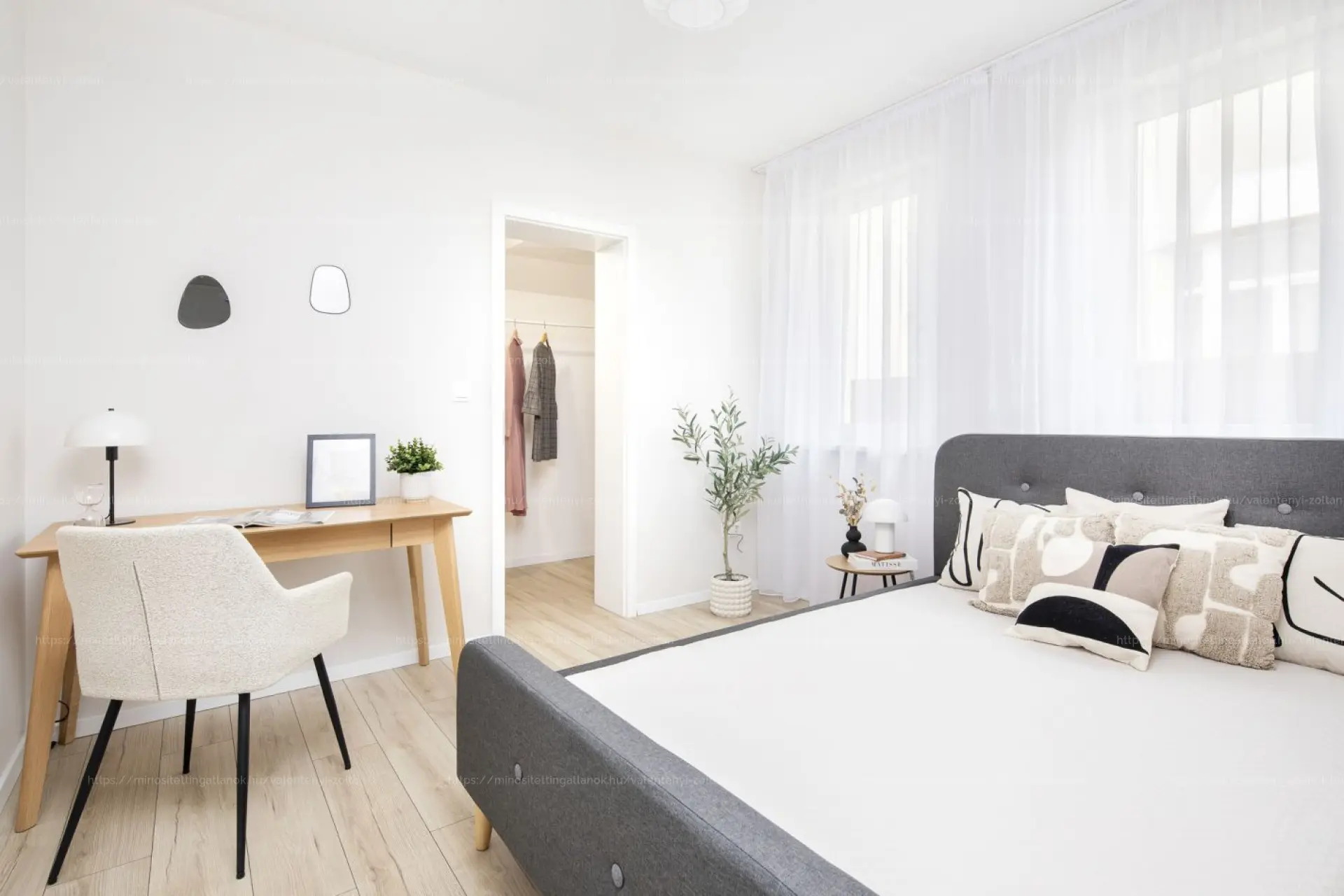 A lakás két hálószobája, külön gardróbja, két mellékhelyisége és gépesített, beépített konyhája tökéletes elrendezést kínál. Minden készen van – nem kell várni, nem kell szerelni, csak beköltözni.