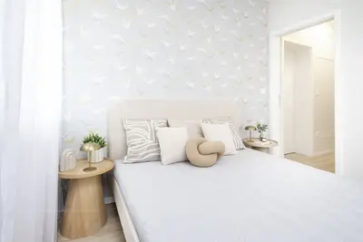 A lakás két hálószobája, külön gardróbja, két mellékhelyisége és gépesített, beépített konyhája tökéletes elrendezést kínál. Minden készen van – nem kell várni, nem kell szerelni, csak beköltözni.