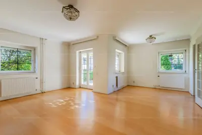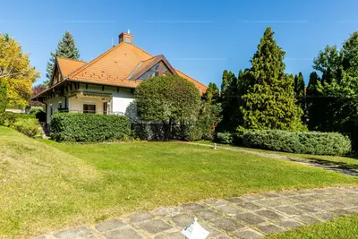 Az 1992-ben, magas minőségben épült 3 szintes, jelenleg 2 nappalis+3 hálószobás (de könnyedén kialakítható további két hálószoba is) ház egy lakóparkban található, melynek hatalmas, közös használatú, fákkal körbeölelt zöld kertje van, privát játszótérrel.