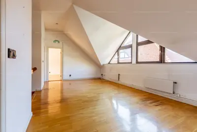 Az emeleten egy óriási 'gyerek nappali', két hálószoba, egy fürdőszoba és egy gardrobe található.