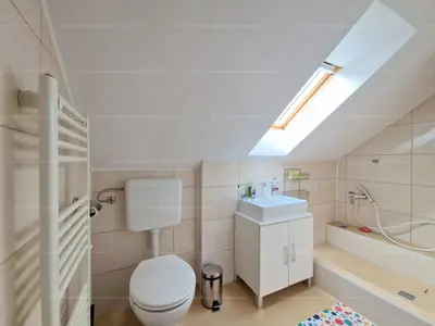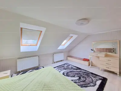 - Az EMELETEN: szintén megtalálható egy fürdőszoba, mely toalettel és zuhanyzóval felszerelt, továbbá egy nagyobb méretű hálórész is rendelkezésünkre áll.