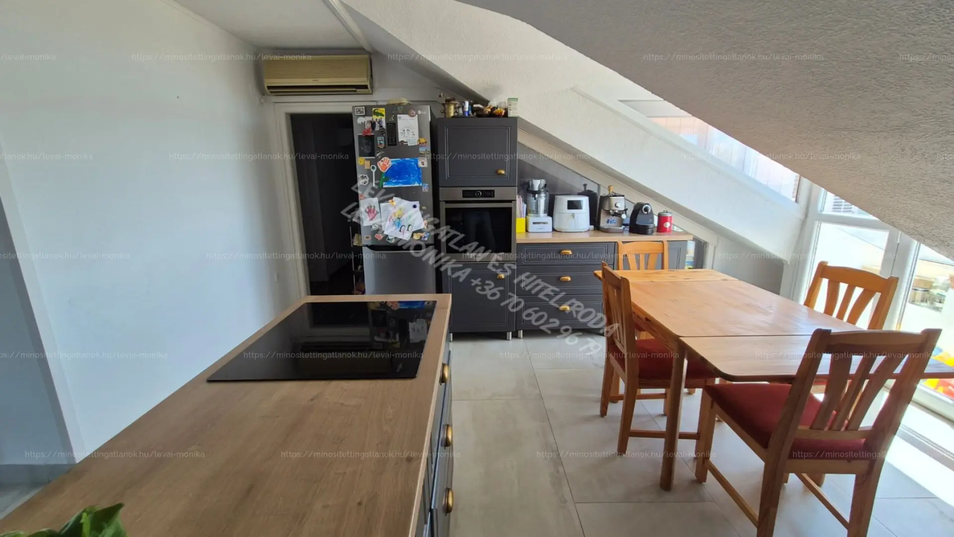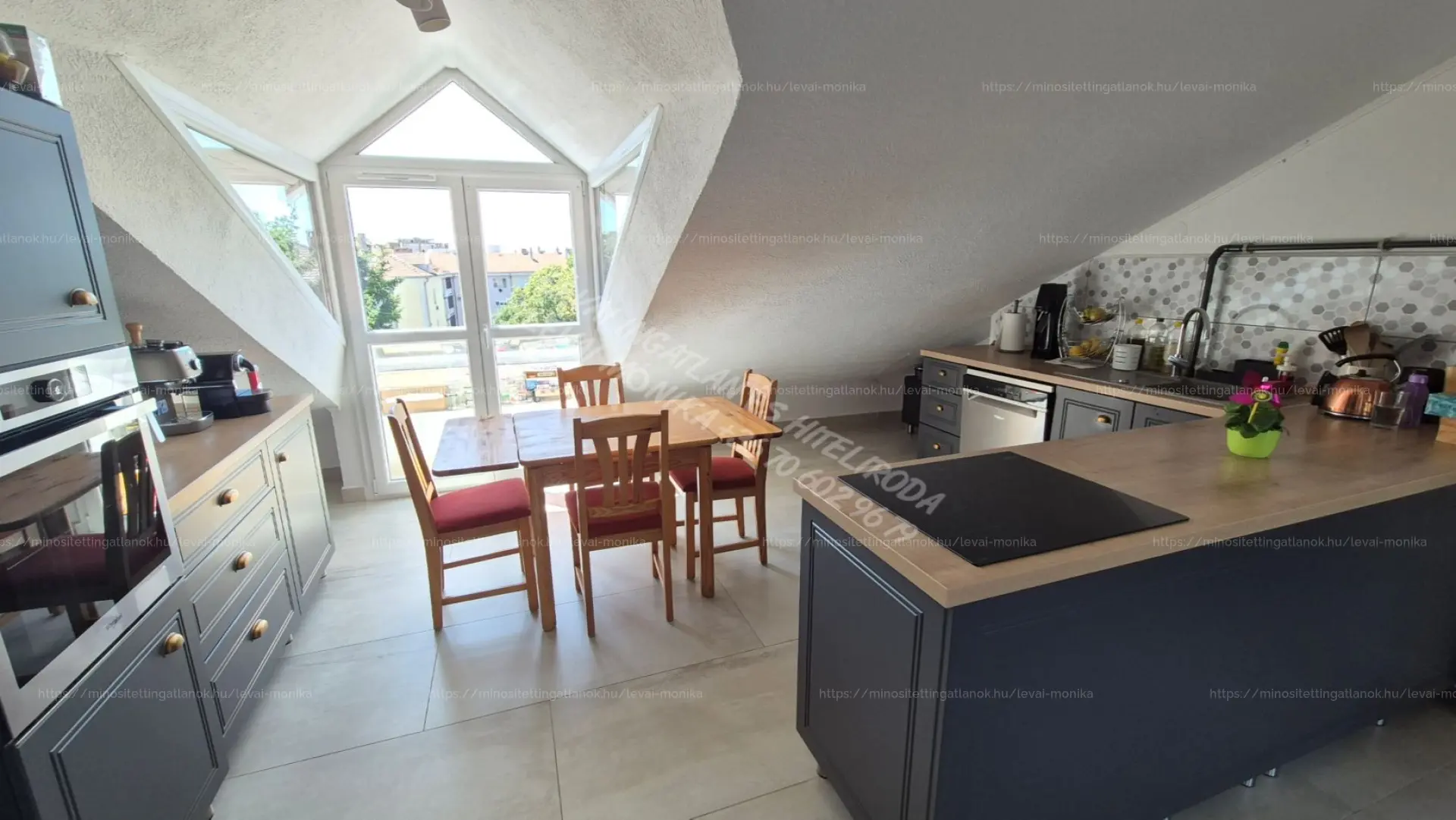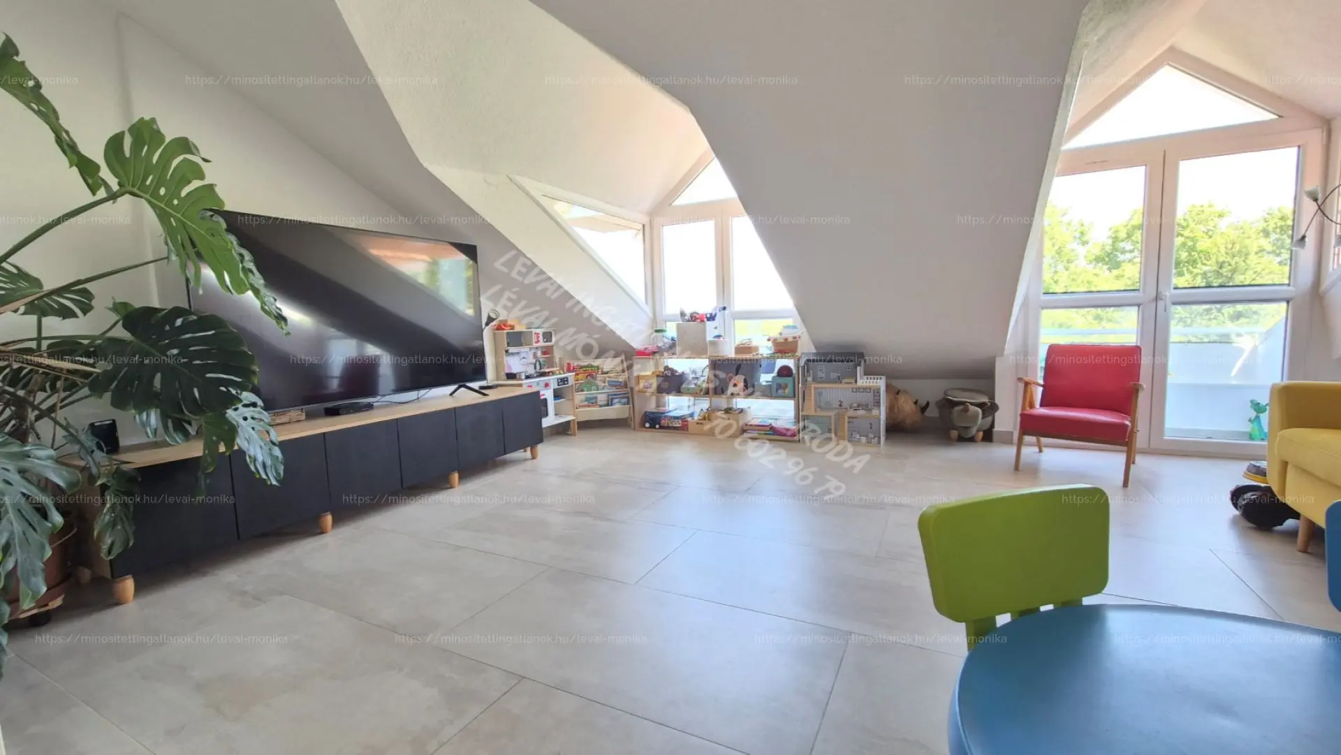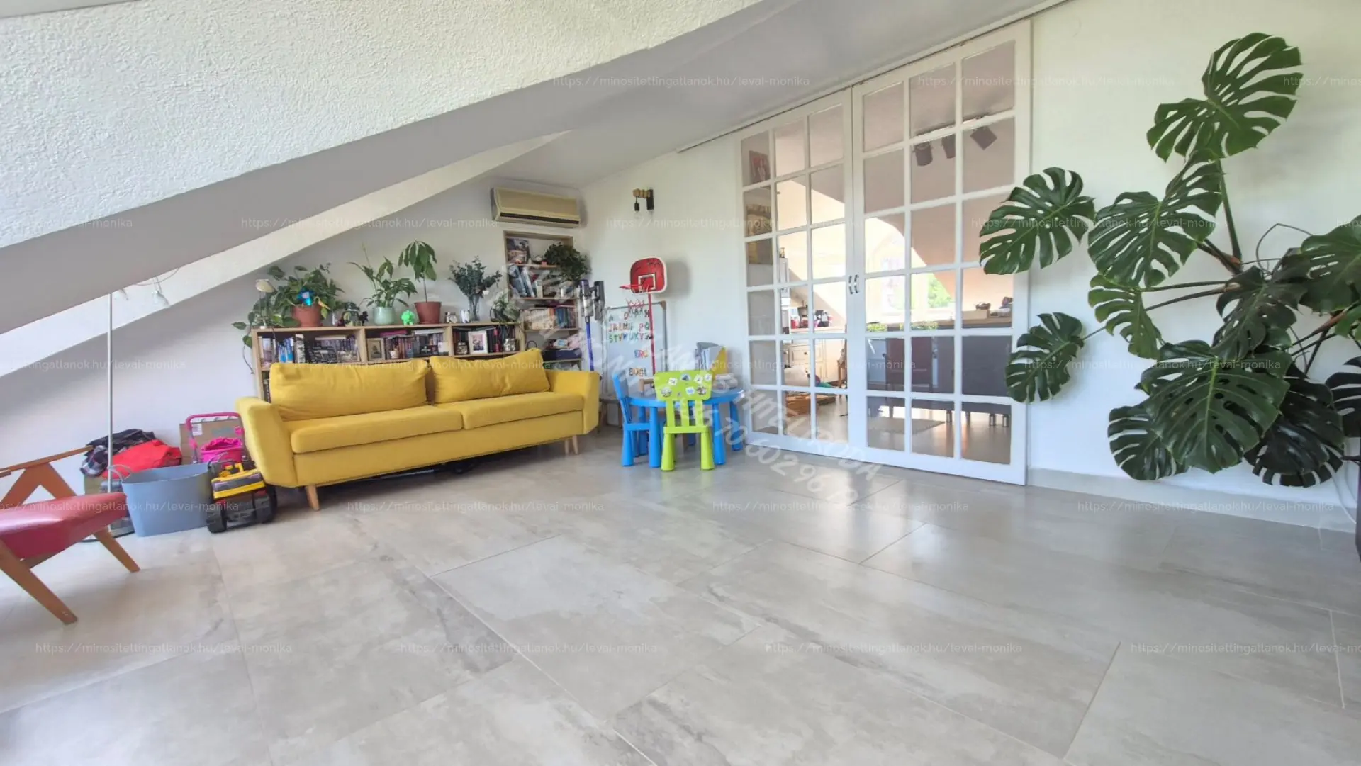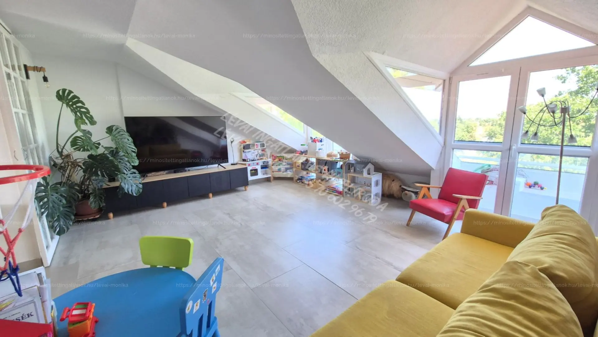 Az ingatlan egy rendezett, karbantartott társasház 4. emeletén helyezkedik el (lift nincs). A lakás különlegességét a tágas, világos belső terek, a tetőtéri kialakítás és a természet közelsége adja.