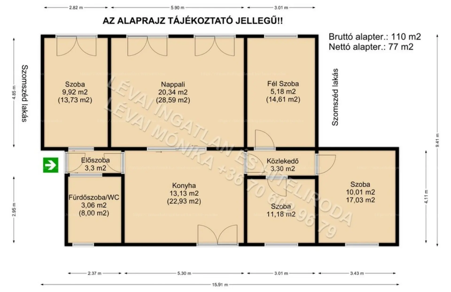 Az ingatlan BRUTTÓ 110 m²-es (nettó 77 m²), nappali és 4 szoba került kialakításra, így **KAPACITÁSBAN, FUNKCIONALITÁSBAN** is ideális akár NAGYCSALÁDOSOKNAK, akár hosszú távú bérbeadásra.