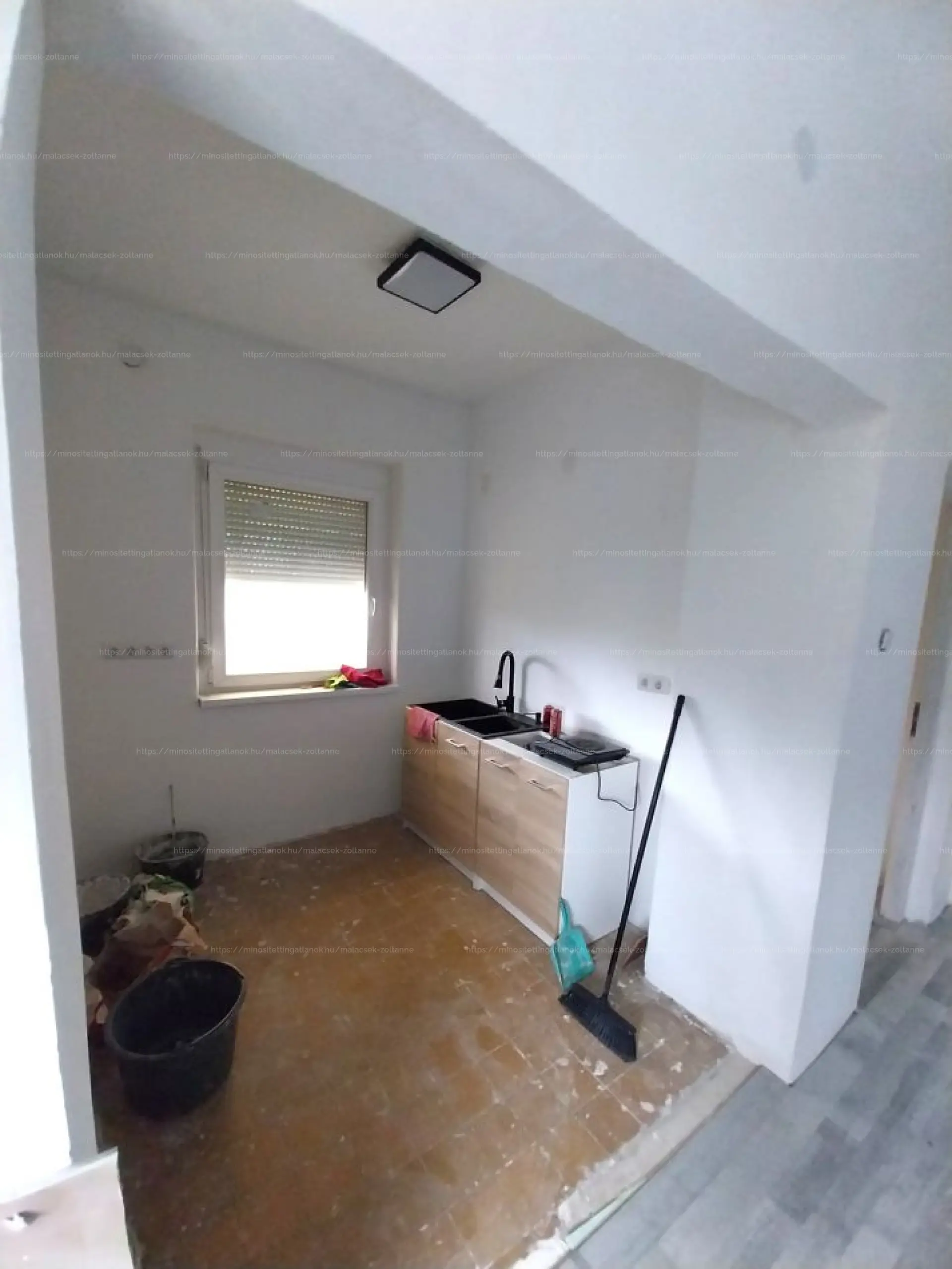 Az alsó szint 62,5 nm : itt található még 2 szoba kialakítására alkalmas helység illetve a kazánház és a tüzelő tároló.