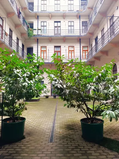 A Gozsdu udvar közelében, pár perc sétára a Deák tértől, ahol mindhárom metróvonal elérhető. Éttermek, kávézók, üzletek és kulturális helyszínek a közelben – minden, ami a belvárosi élethez kell.