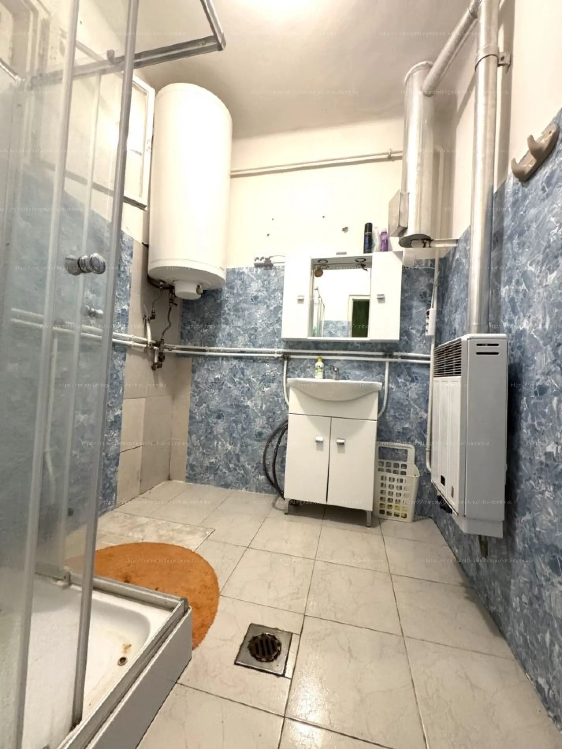 A fürdő zuhanyzóval kialakított és külön helységben van a WC.