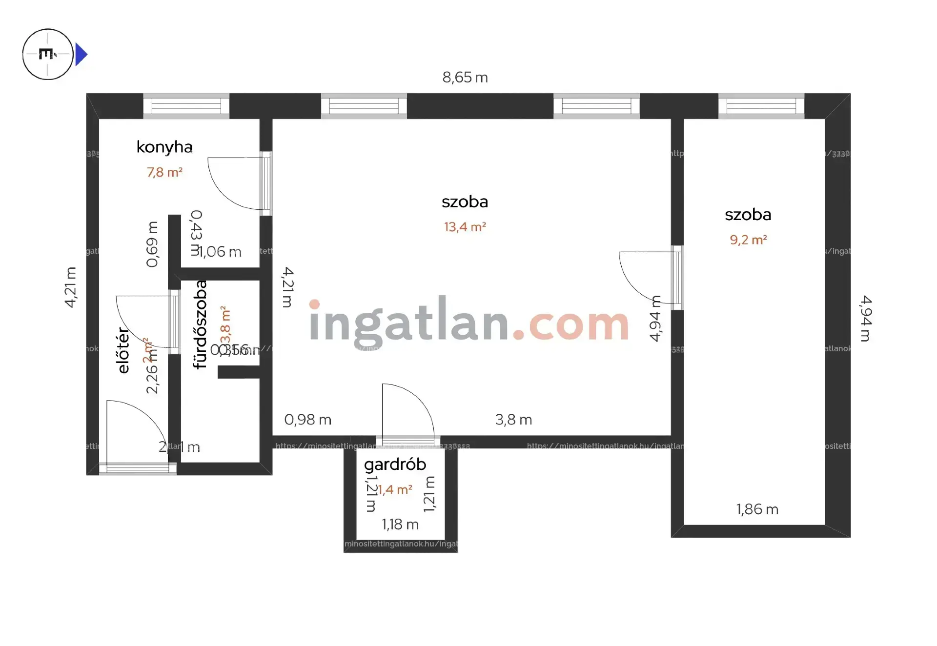 Az ingatlan tehermentes, 1/1 tulajdon, azonnal birtokba vehető.