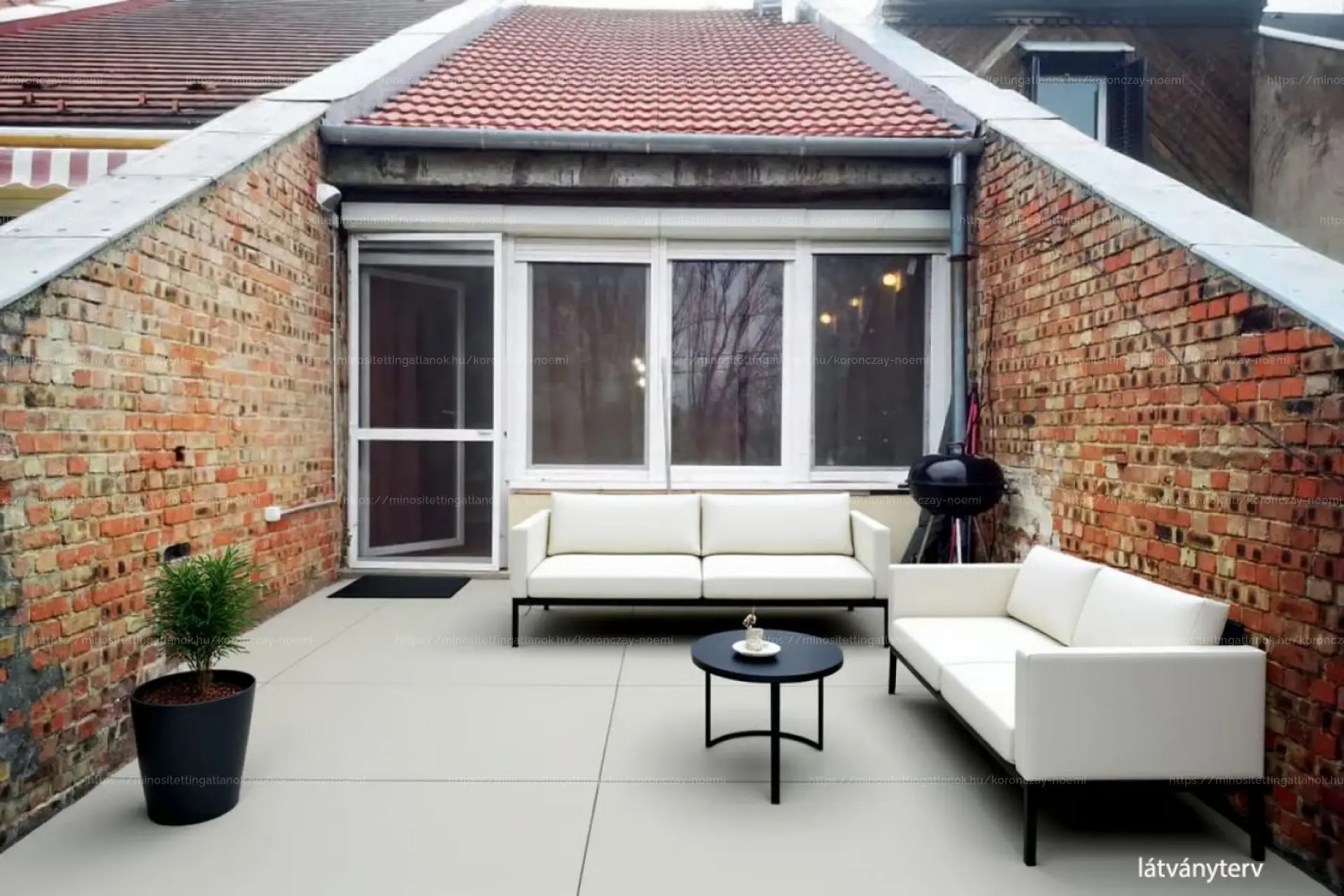 A lakáshoz tartozik egy 30 m²-es, napfényes terasz, amely tökéletes helyszín a reggeli kávéhoz vagy a délutáni pihenéshez, valamint egy 30 m²-es garázs és egy 40 m²-es pince, ami ideális mosókonyhának és tárolónak.
