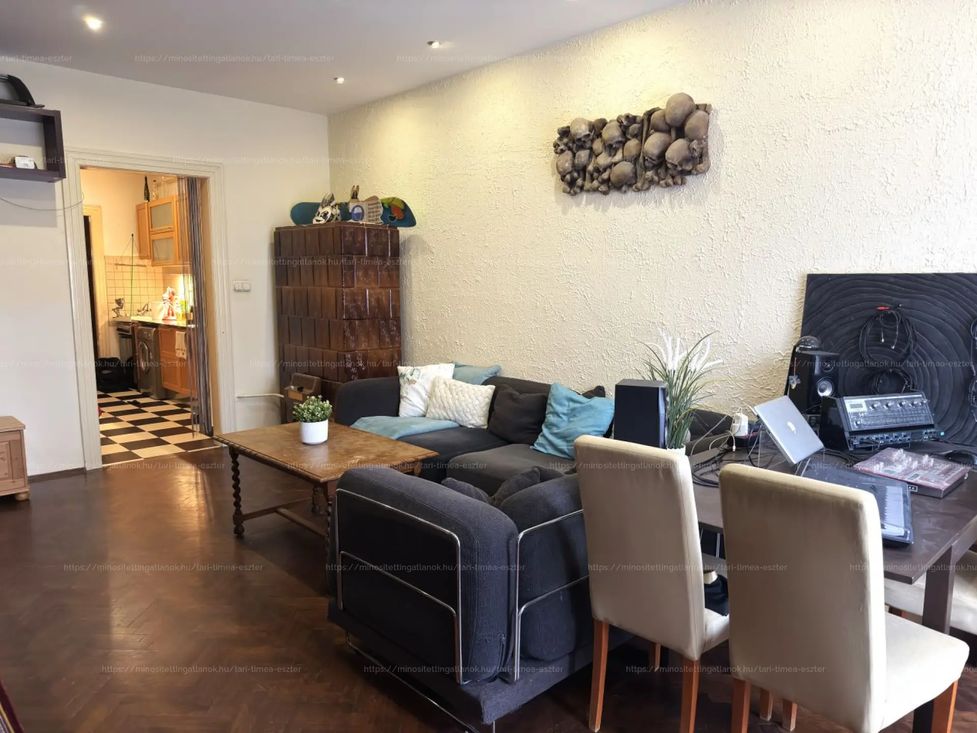 A lakás fűtése gázos cserépkályhával biztosított, amely meleg és barátságos hangulatot teremt. Jelenleg megbízható bérlő lakja, aki szívesen maradna, ha szükséges, így befektetésnek is ideális. A bútorzat a vételár részét képezi, így a lakás könnyedén átvehető.