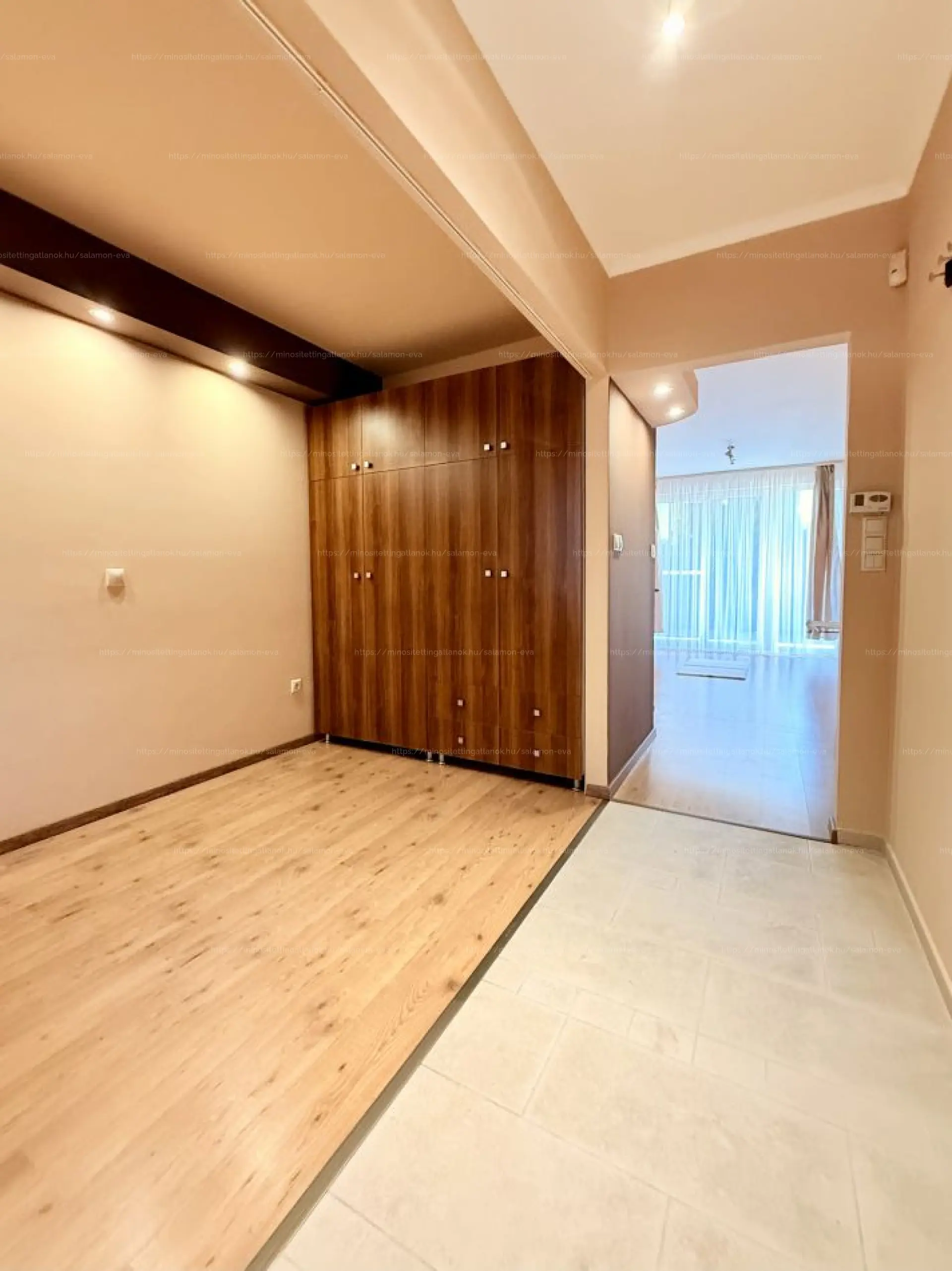 Az ingatlan igényesen kialakított, meleg, otthonos színekkel. Részben bútorozott, egy kanapéval és franciaággyal könnyen teljessé tehető. A lakás klimatizált és gépesített, hűtőszekrény és mosógép is rendelkezésre áll. A fürdőszoba kádas kialakítású.