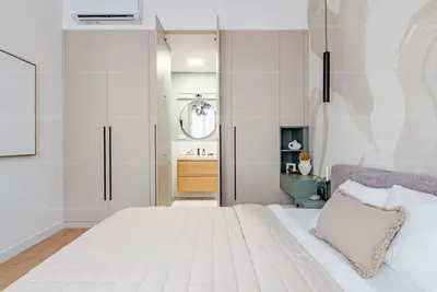 Az egész lakásban egyedi tervezésű, beépített bútorok találhatók, amelyek a vételár részét képezik, így az új tulajdonosnak csak a személyes tárgyakat kell hoznia. A konyha különösen figyelemre méltó: csúcskategóriás Bosch gépekkel felszerelt, a modern családi főzések minden igényét kiszolgálja.