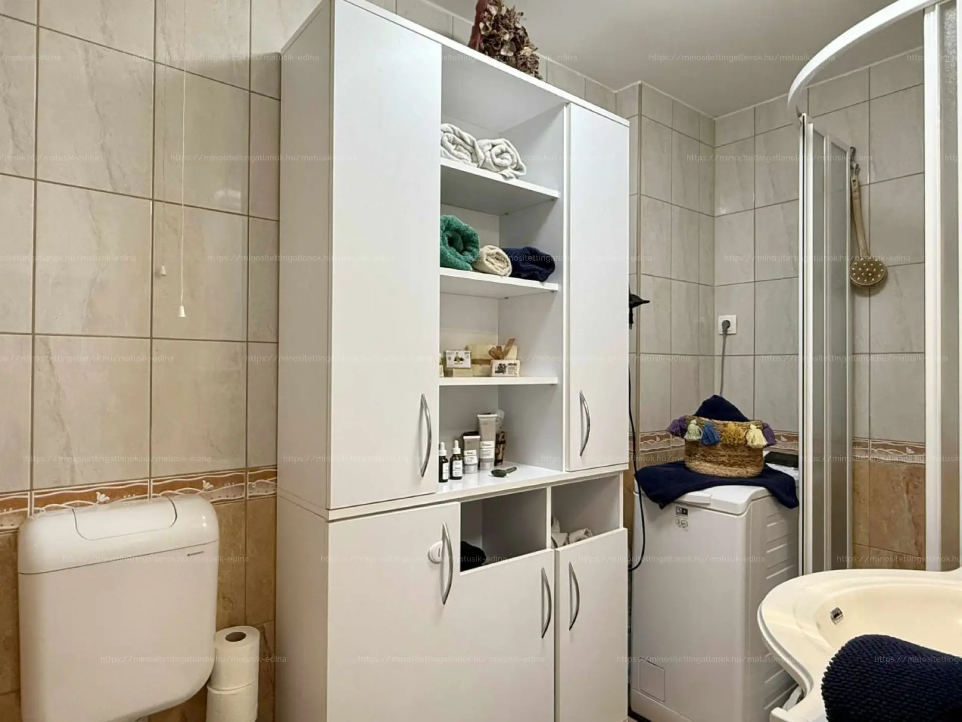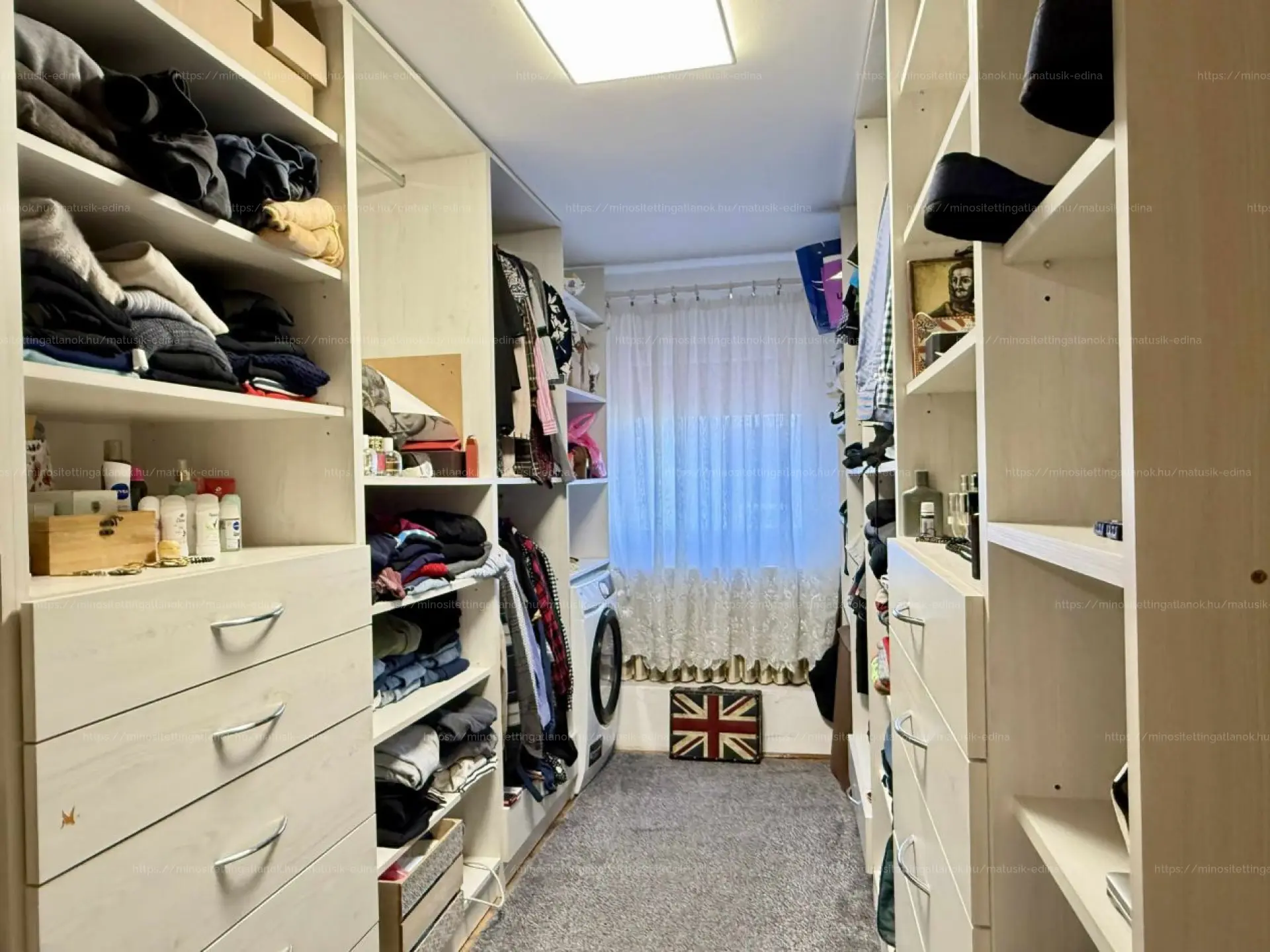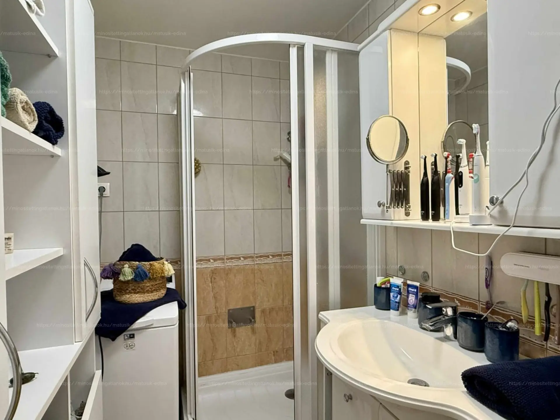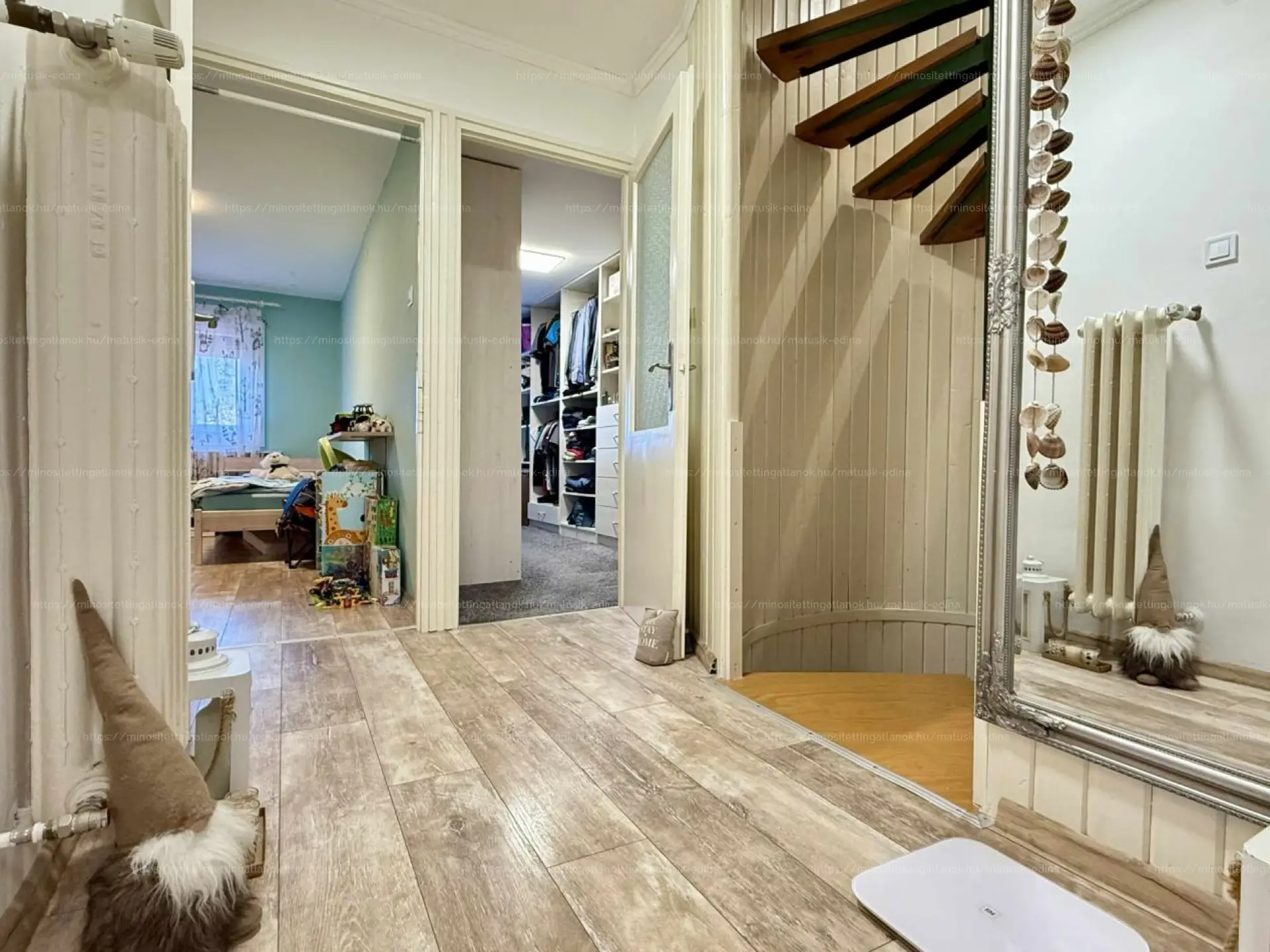 A középső szint 3 szobával rendelkezik (10-11-12 m2-esek), melyből az egyik jelenleg gardróbként funkcionál. Ezen a szinten egy zuhanyzós fürdőszoba is van, wc-vel.