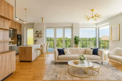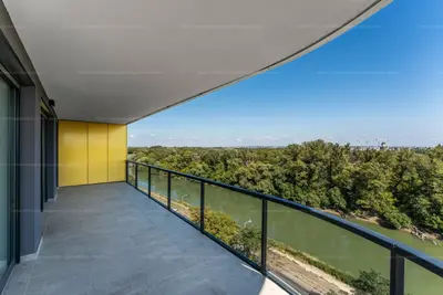 8. emelet, full panoráma Duna–Hajógyári-sziget–város fényei, prémium konyha, két fürdő, külön WC, hőszivattyús hűtés-fűtés, elektromos redőnyök, riasztó, videokaputelefon.