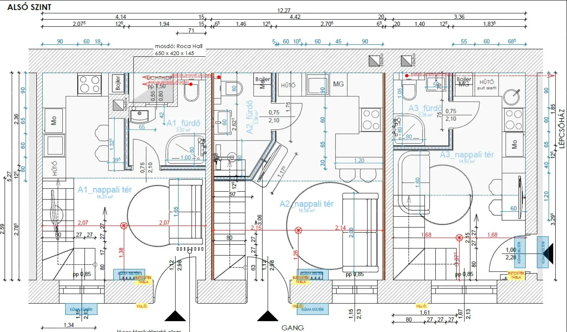 A lakás egy három lakásból álló, egymás mellett elhelyezkedő apartmansor része, amelyek mindegyike külön bejárattal, külön víz- és villanyórával rendelkezik, valamint ügyvédi megosztással (földhivatalnál iktatva) elválasztottak.