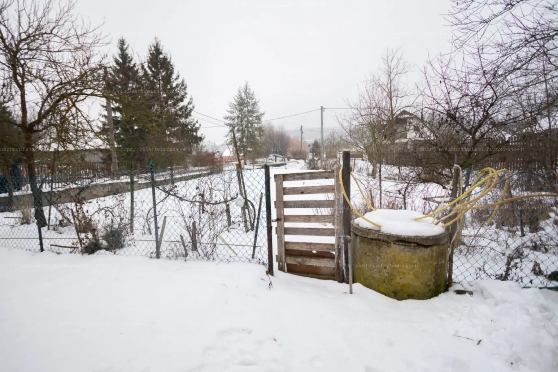 A gyümölcsfákkal beültetett kertben ásott kút, könnyűszerkezetes tárolók és garázs is helyet kapott – tökéletes választás azoknak, akik a nyugalmat, a teret és a praktikumot egyszerre keresik.