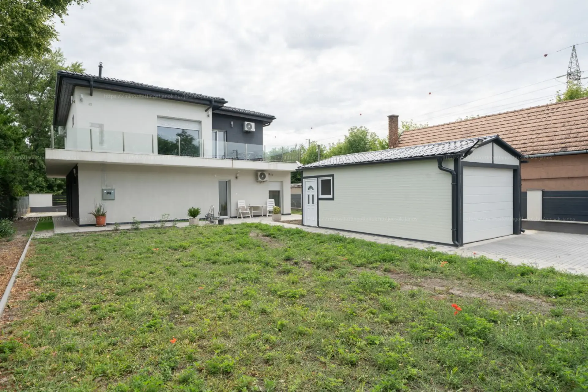 Új építésű otthonnal szemben szintén előny, hogy az autóbeállók térburkolatain kívül itt külön épített garázs is elkészült.
