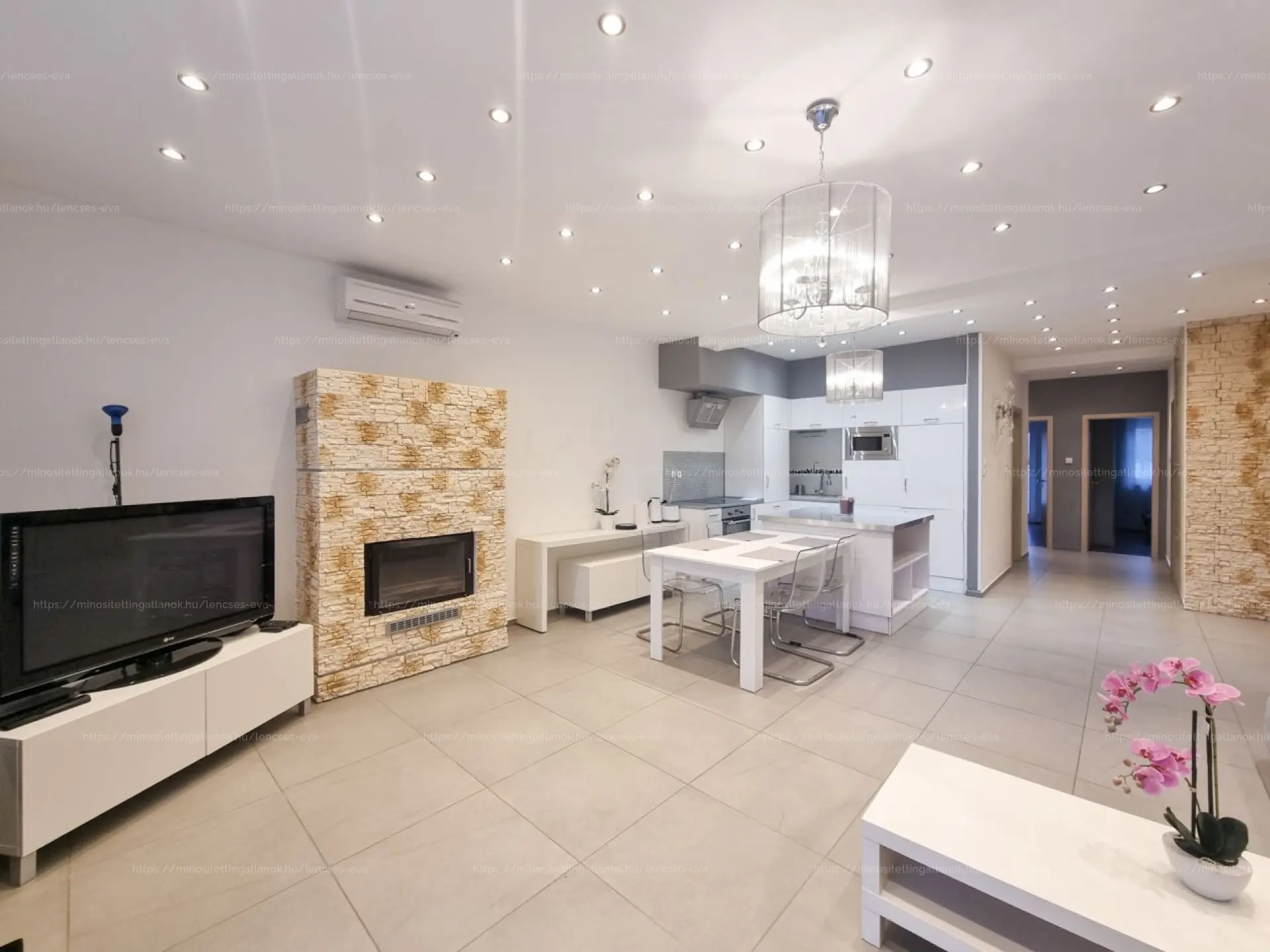 A nettó 82 NM lakótérhez 12 NM TERASZ kapcsolódik. Átgondolt elrendezés: NAPPALI + 2 HÁLÓ, külön GARDRÓBSZOBA, tágas FÜRDŐSZOBA KÁDDAL, ZUHANNYAL, 2 WC-vel és BIDÉVEL. A mindennapi kényelmet modern műszaki megoldások támogatják: CIRKÓ FŰTÉS, PADLÓFŰTÉS, FRANCIA ERKÉLY, LÁTVÁNYKANDALLÓ és KLÍMA. A terasz fiatalok számára ideális pihenő vagy otthoni munkaterület lehet, a nappali–hálók különválasztása pedig kényelmes életteret ad.