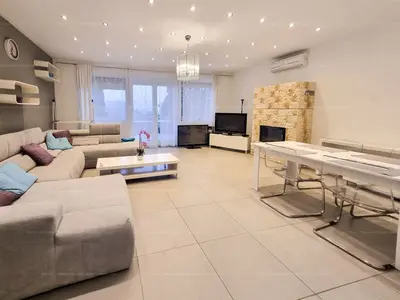 A nettó 82 NM lakótérhez 12 NM TERASZ kapcsolódik. Átgondolt elrendezés: NAPPALI + 2 HÁLÓ, külön GARDRÓBSZOBA, tágas FÜRDŐSZOBA KÁDDAL, ZUHANNYAL, 2 WC-vel és BIDÉVEL. A mindennapi kényelmet modern műszaki megoldások támogatják: CIRKÓ FŰTÉS, PADLÓFŰTÉS, FRANCIA ERKÉLY, LÁTVÁNYKANDALLÓ és KLÍMA. A terasz fiatalok számára ideális pihenő vagy otthoni munkaterület lehet, a nappali–hálók különválasztása pedig kényelmes életteret ad.