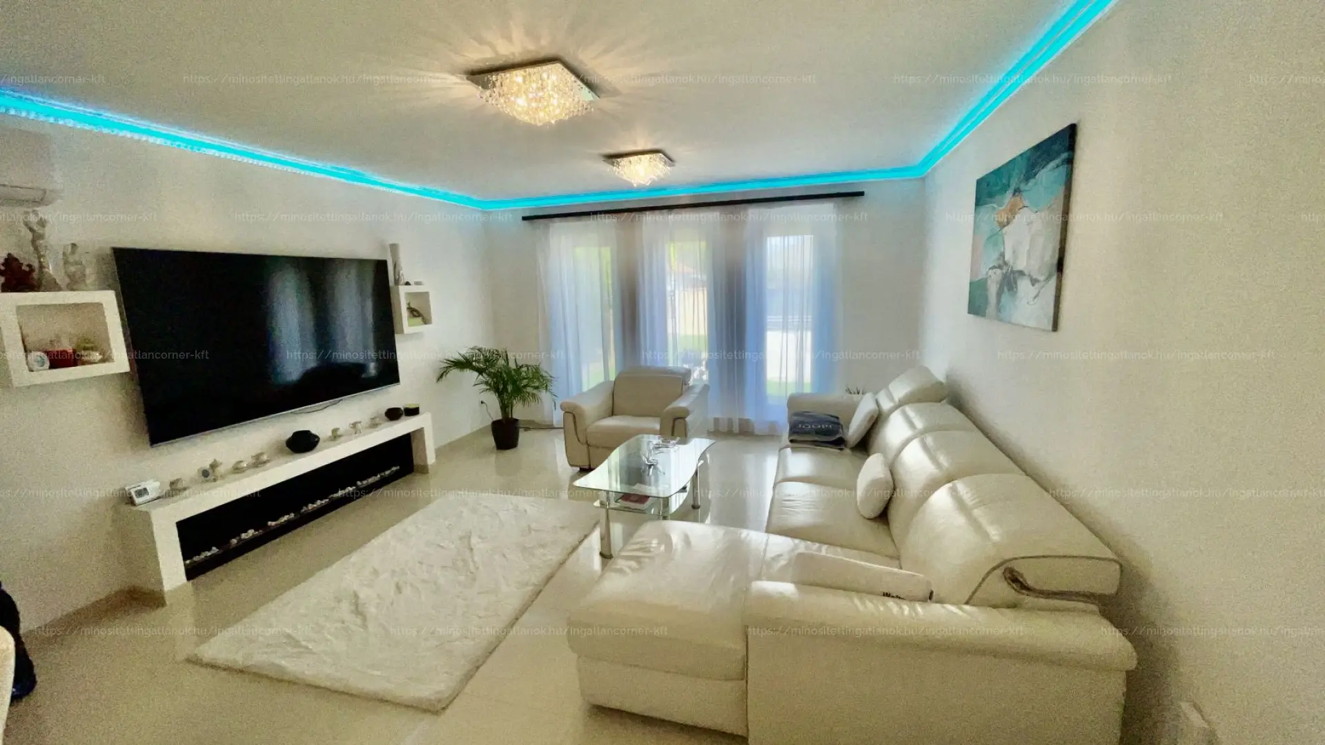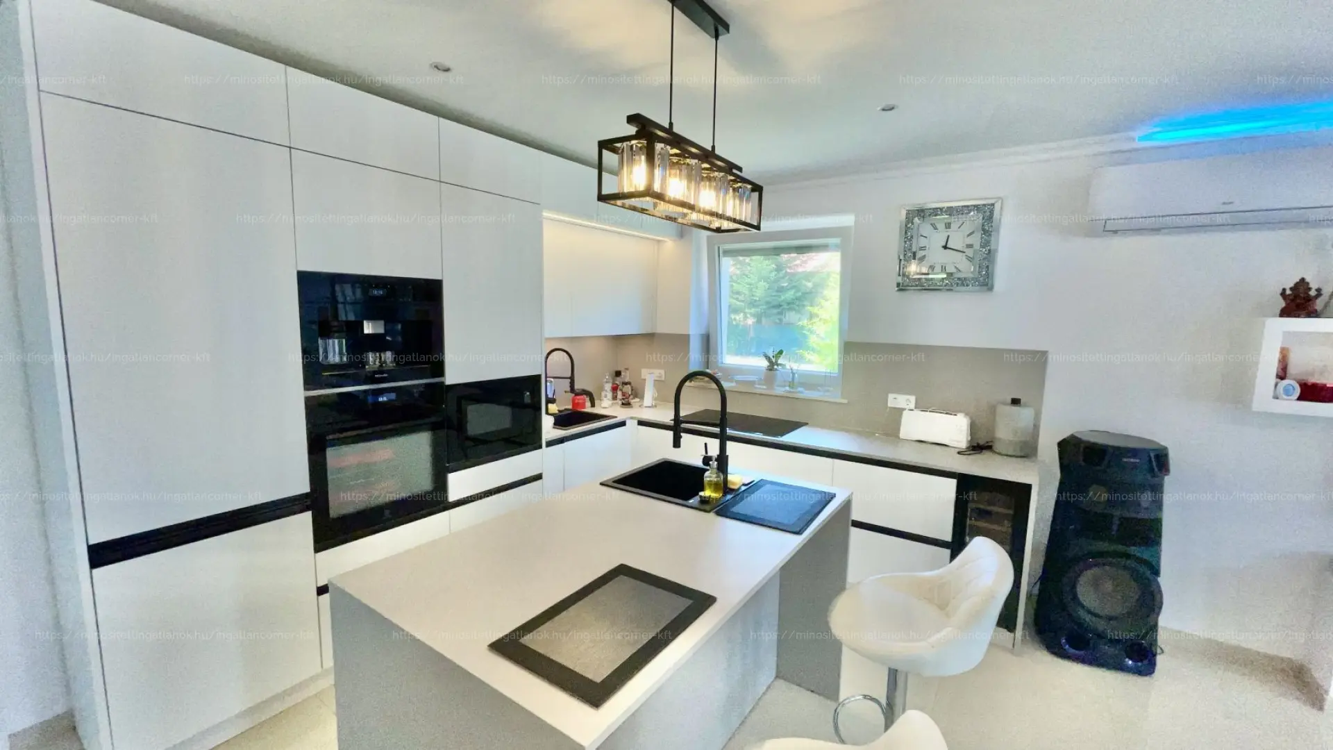 Műszaki jellemzők (prémium): olasz márvány burkolatok, magasfényű fa beltéri ajtók, háromrétegű üvegezésű nyílászárók elektromos redőnnyel és szúnyoghálóval, ledes világítás, etanolos díszkandalló, biztonsági főbejárat, fúrt kút a locsoláshoz, járólapvilágítás az udvaron.