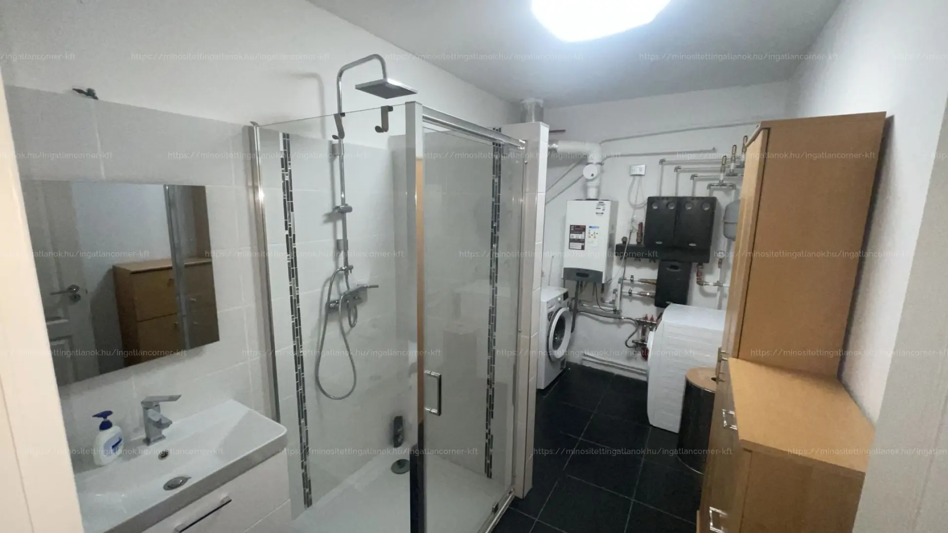 Különálló garzonlakás: önálló konyha-étkező, tágas egy szoba, zuhanyzós fürdő és WC, alkalmas vendéglakásnak, irodának vagy befektetésnek.