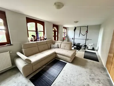 Az alsó szint az udvarból és a lakásból is megközelíthető, így akár két generációnak is tökéletes az ingatlan.