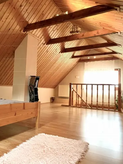 Található még itt egy külön wc, és egy 22nm-es sarokkáddal és zuhannyal is felszerelt fürdőszoba, ami méretéből adódóan akár konditeremmé, wellness helyiséggé is átalakítható, ehhez a szauna már elő van készítve.