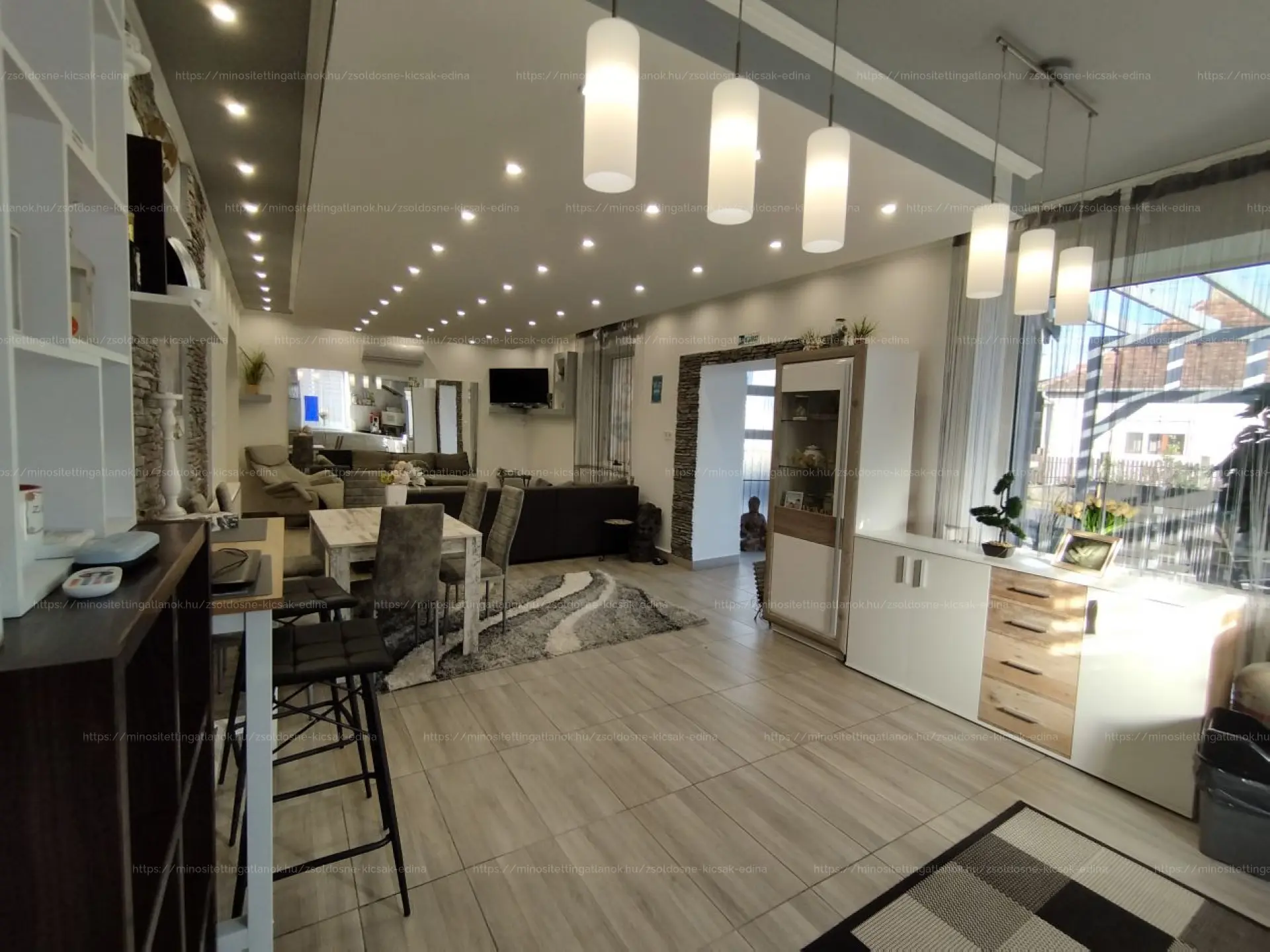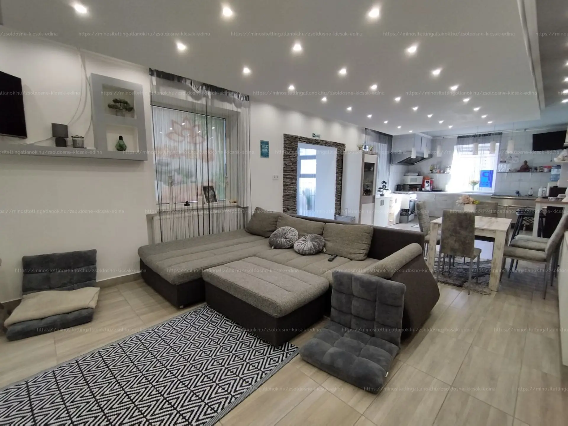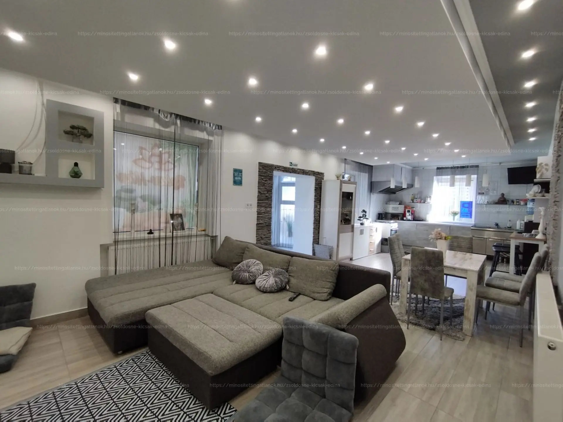 Az épületben található: Nappali,étkező,konyha,egy légtérben.