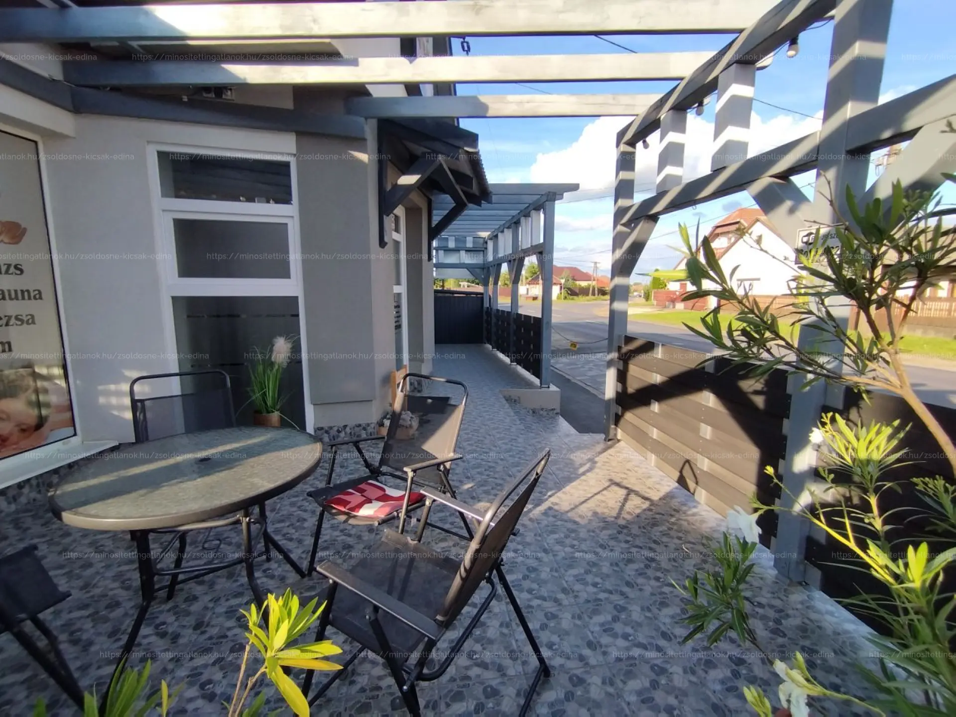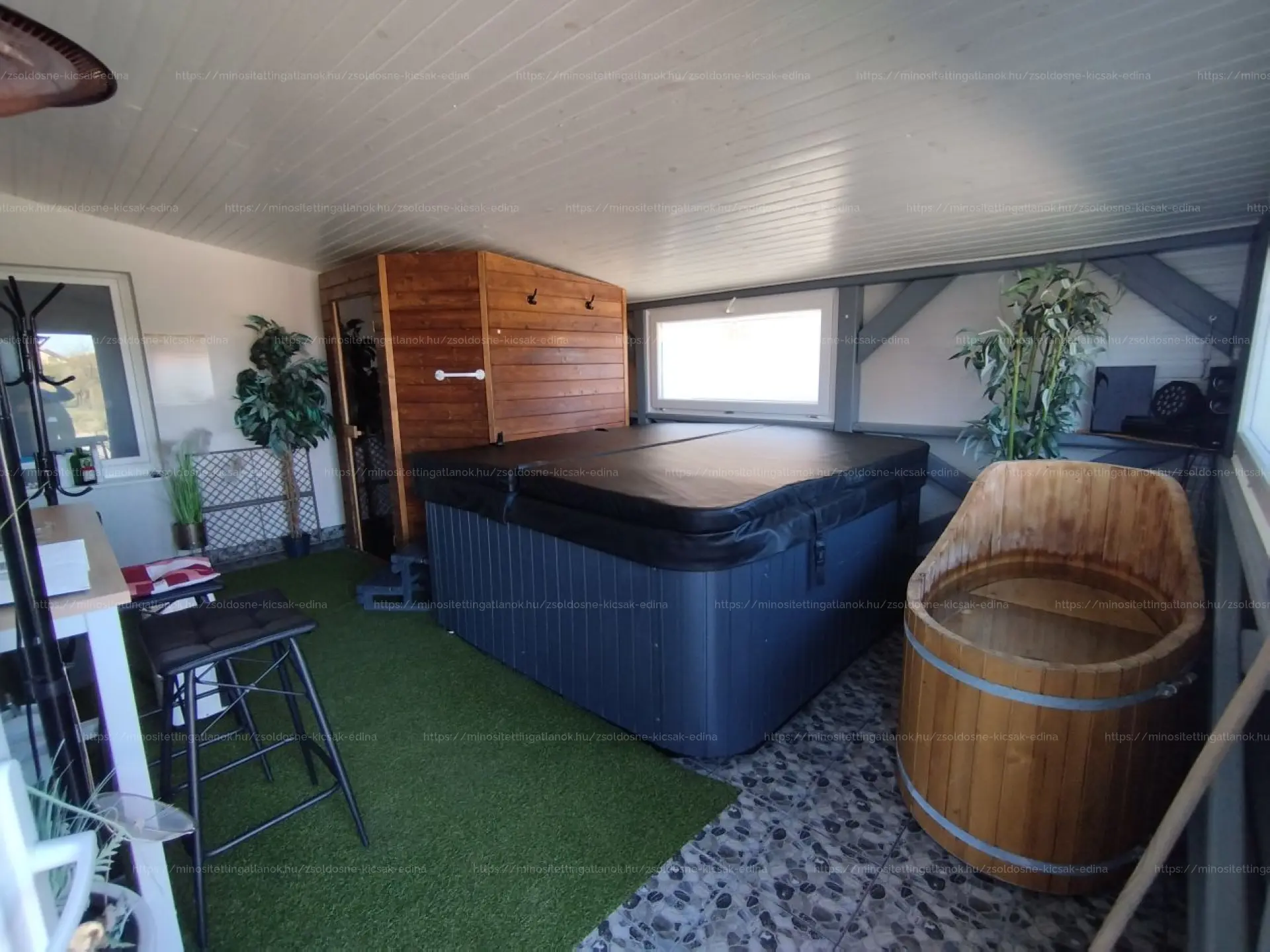 A hátsó terasz téliesitése megtörtént szendvicspanelel.Jelenleg szauna,Jakuzzi,található benne.