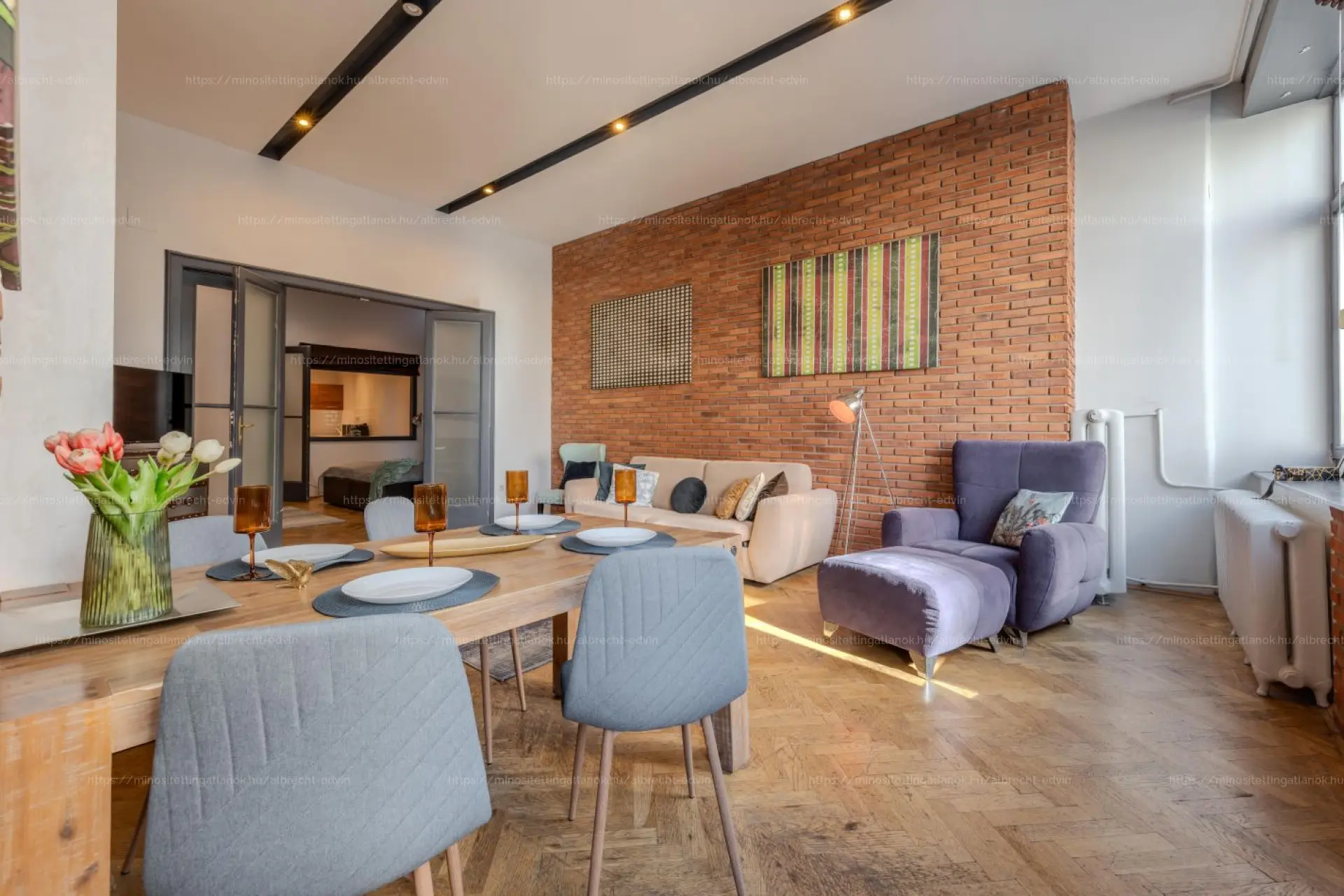 Bár hivatalosan 1 szobás, a lakásban két egybenyíló szoba került kialakításra, így a tér élhetőbbé és sokoldalúbbá vált. Ideális lehet modern lakásként vagy elegáns irodaként is.