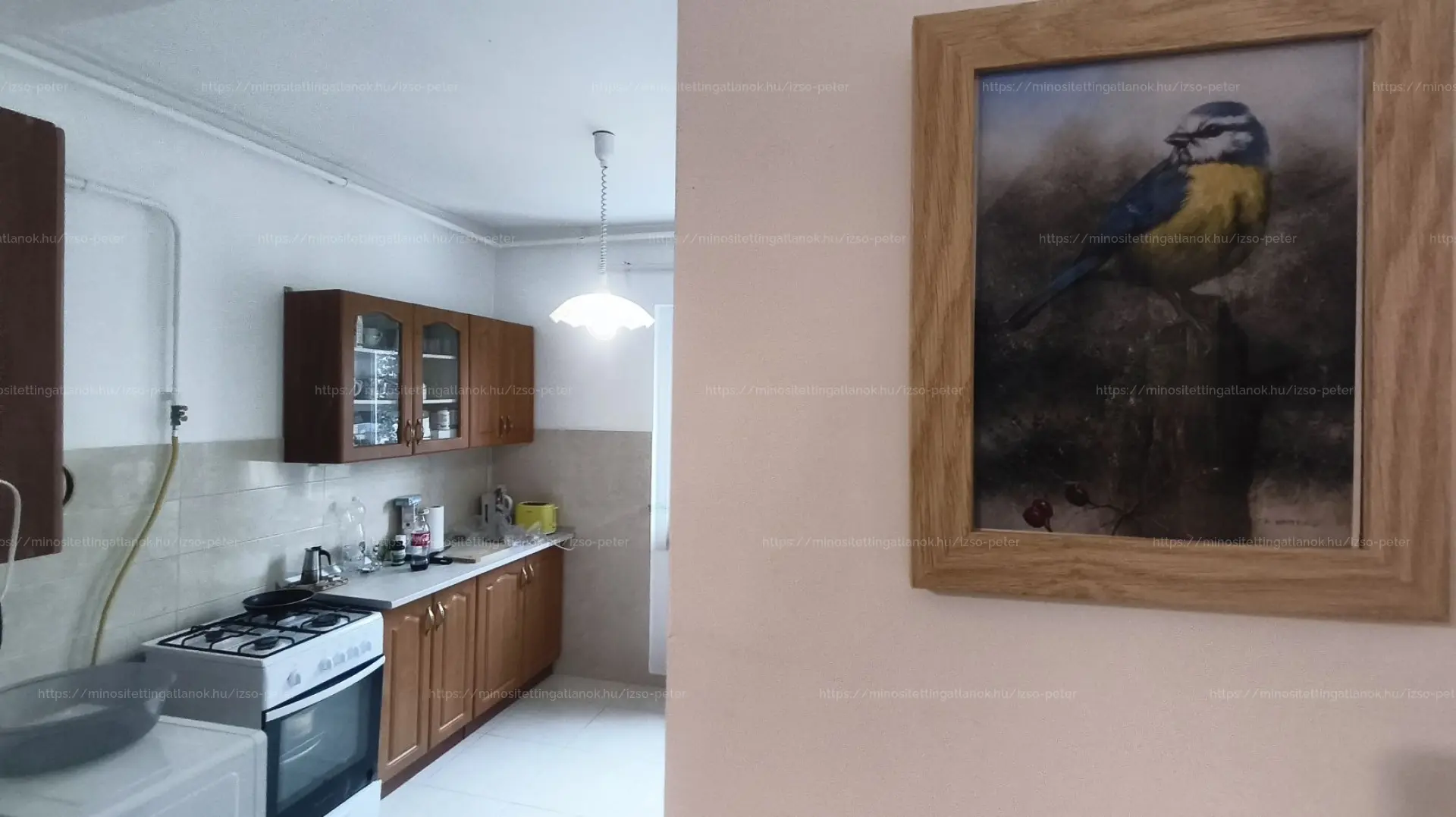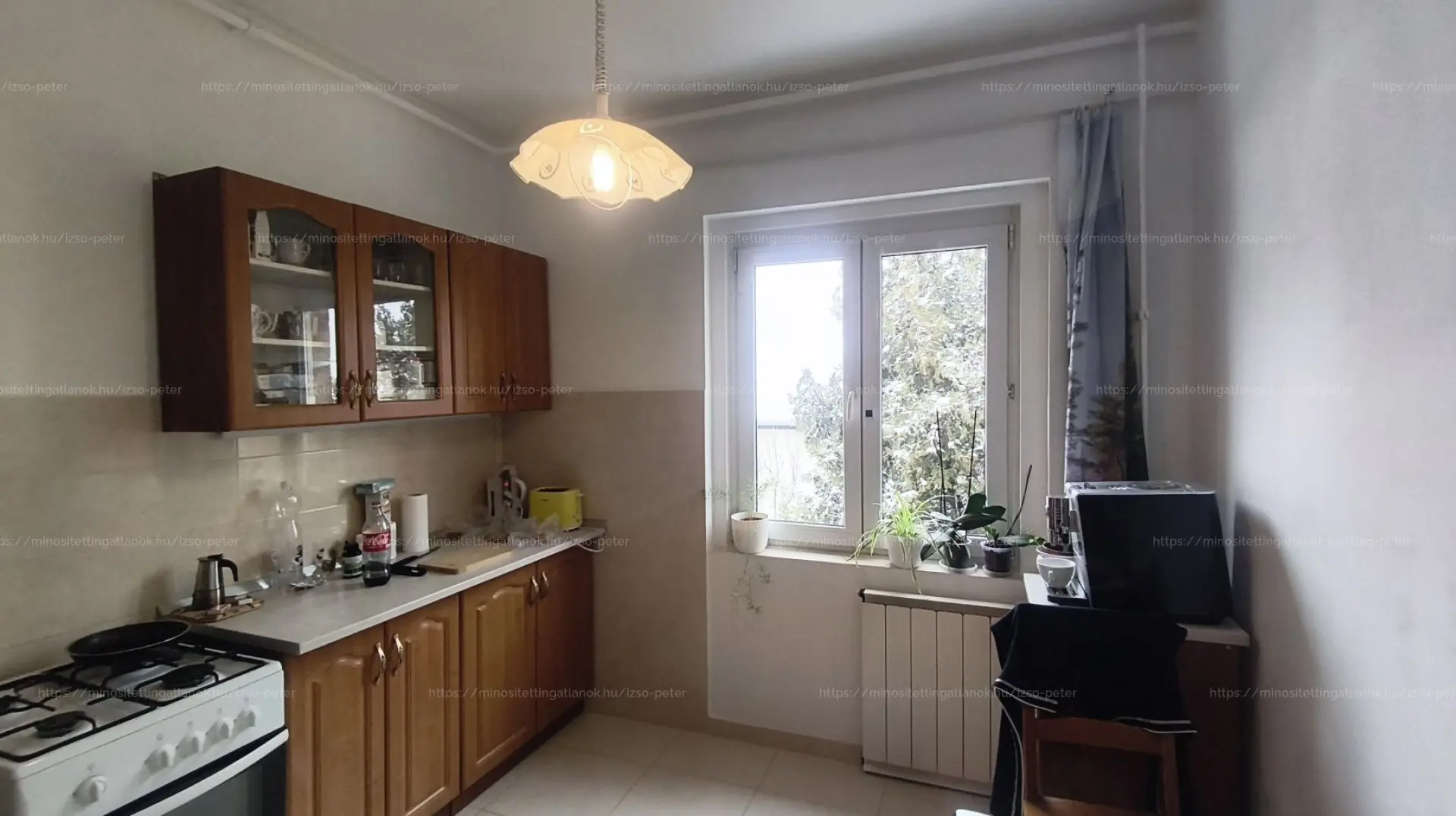 Az étkezős konyhája tágas akár egy családnak és ideális lehet, mindkét szobája napfényes, a nappaliként használt szoba 20 m2, a jelenlegi hálószoba 16 m2-es.