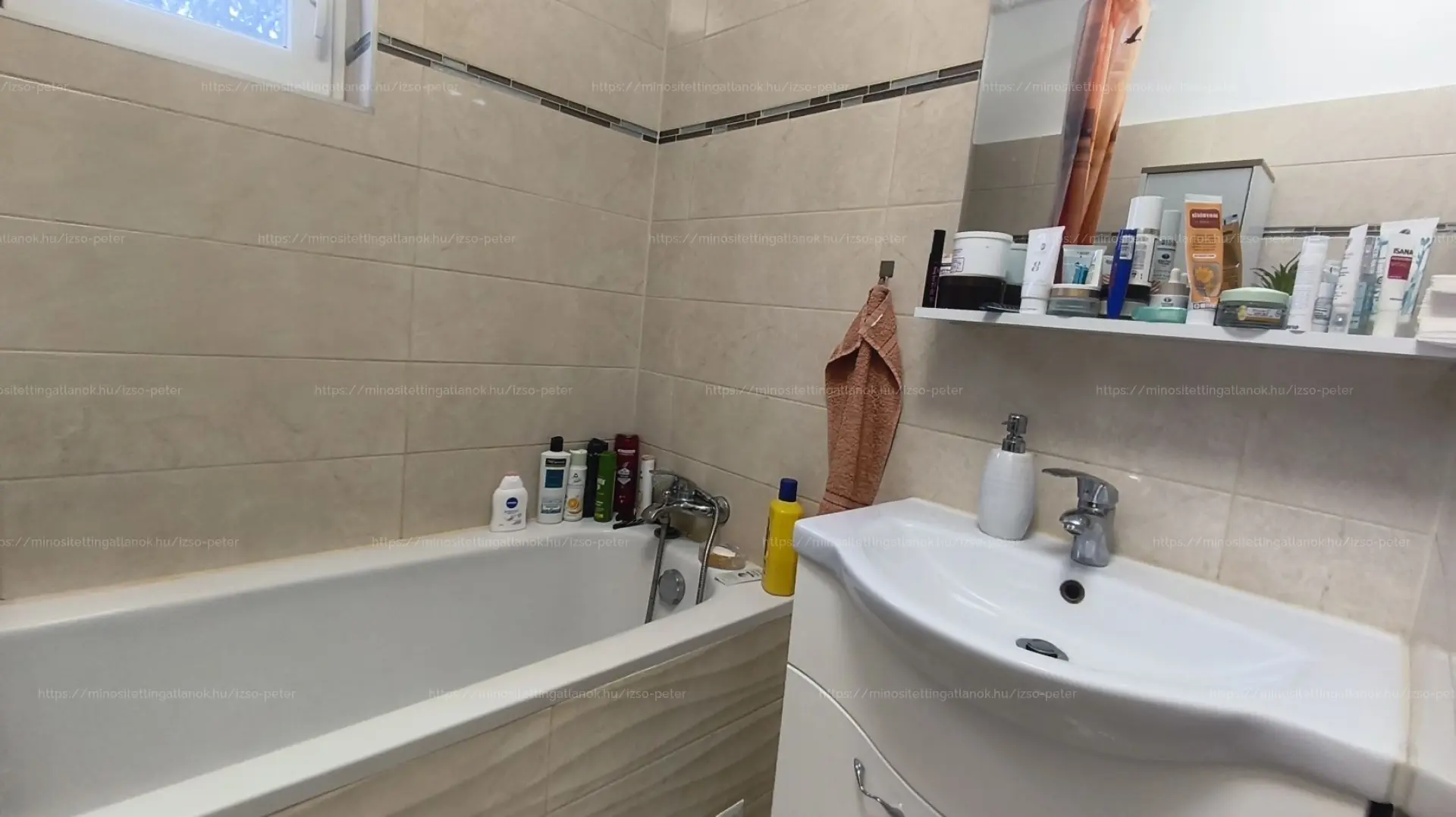 A fürdőszoba ablakos, kádas. Külön mellékhelyiség is kialakításra került.