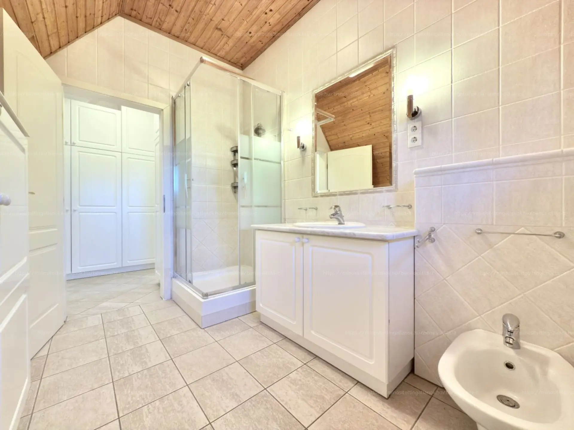 Az emeleten a szülői lakosztály gardróbbal és saját fürdőszobával, két további háló, erkély és vendégfürdő biztosítja a család kényelmét. A garázsszinten nemcsak a fűtött lehajtó és a tágas parkoló nyújt praktikumot, hanem a wellnessrészleg – jacuzzi és szauna – is, ahol a hétköznapok fáradalmait kipihenheti.