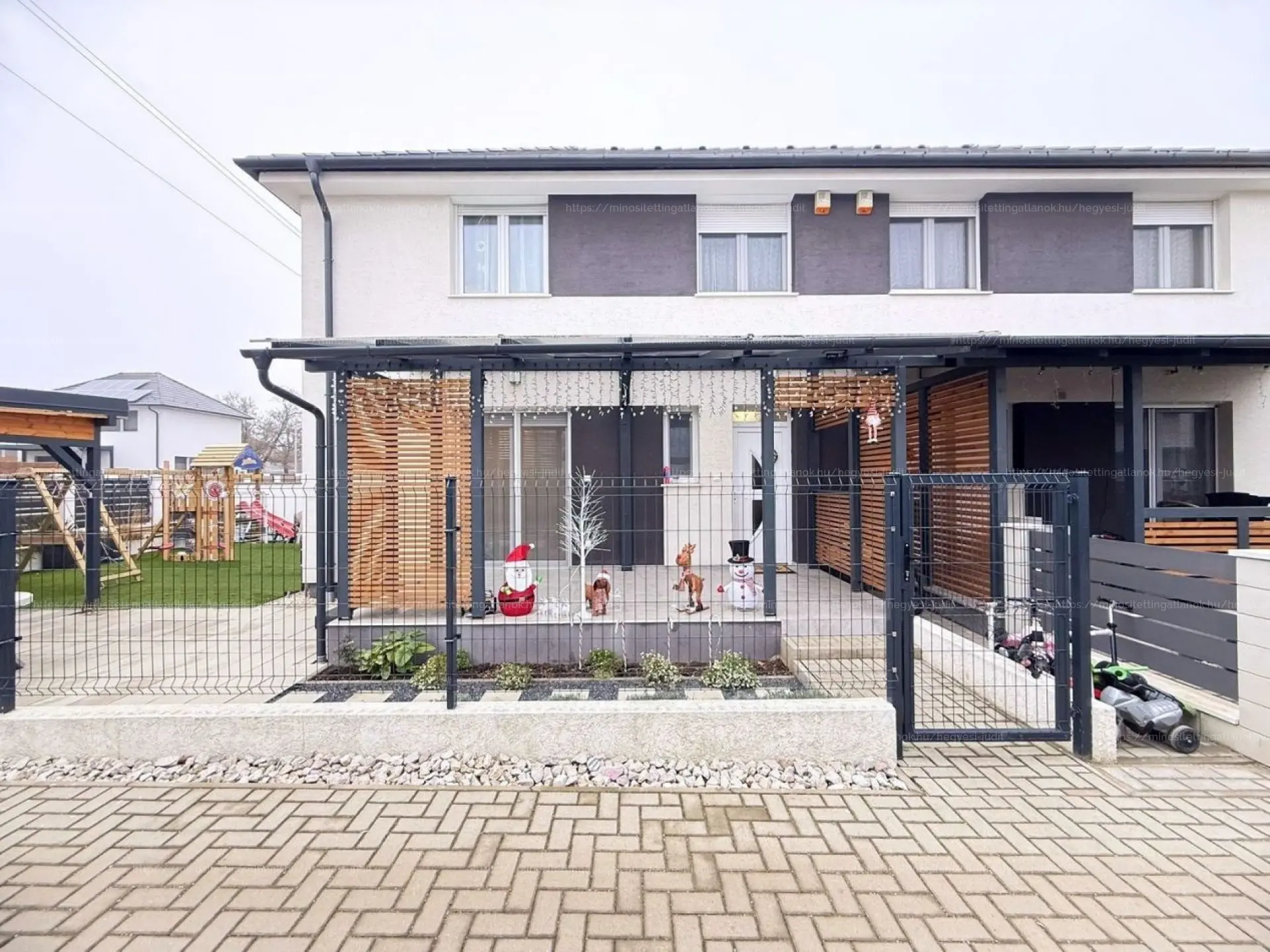 Gyömrő újépítésű, csendes lakóparkjában eladó egy 2021-ben átadott, 83 m²-es, nappali + 3 hálószobás újszerű ikerház fél.
