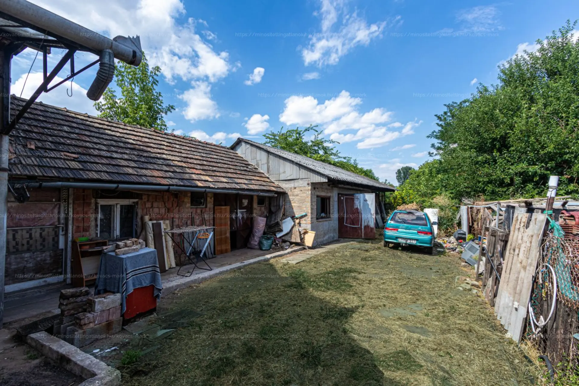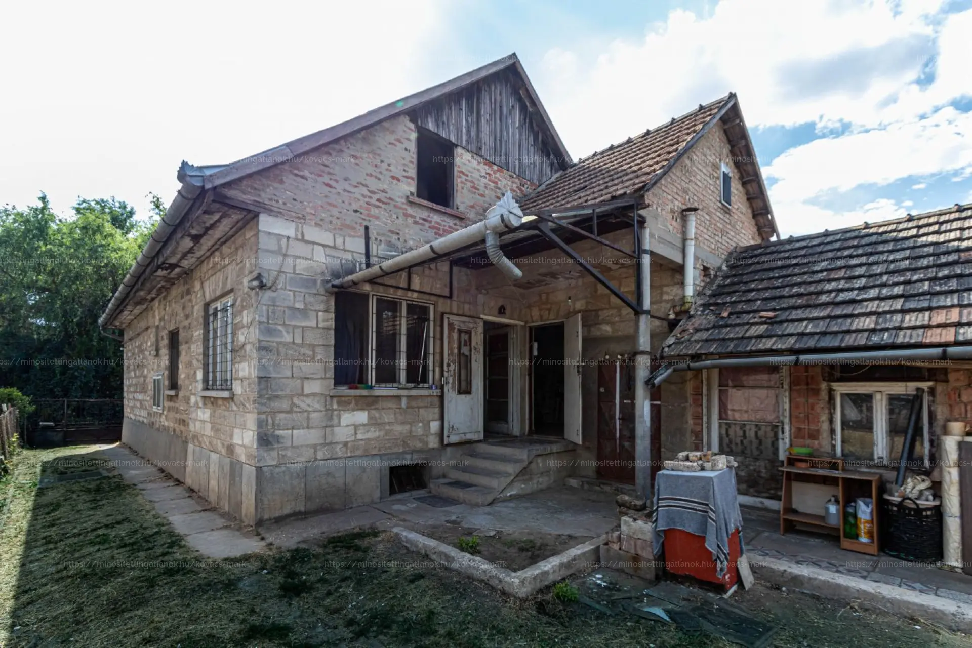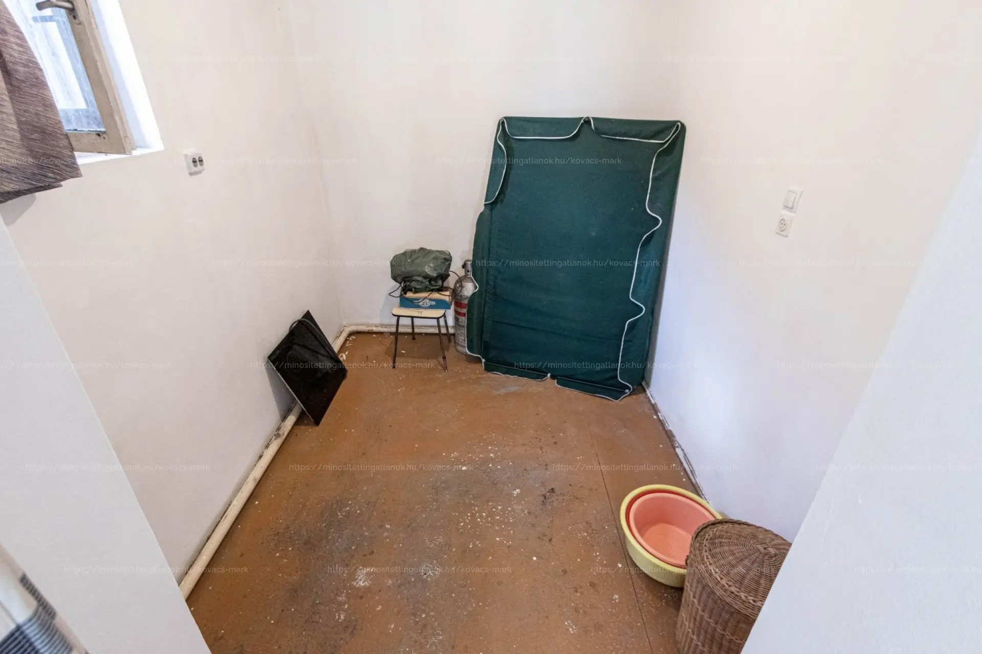 A telek közepén, oldalhatáron helyezkedik el, előkerttel, hátsó, külső lépcső a bejáratnál, előszoba, étkezős konyha, fürdőszoba wc , 4 külön szoba,kamra.