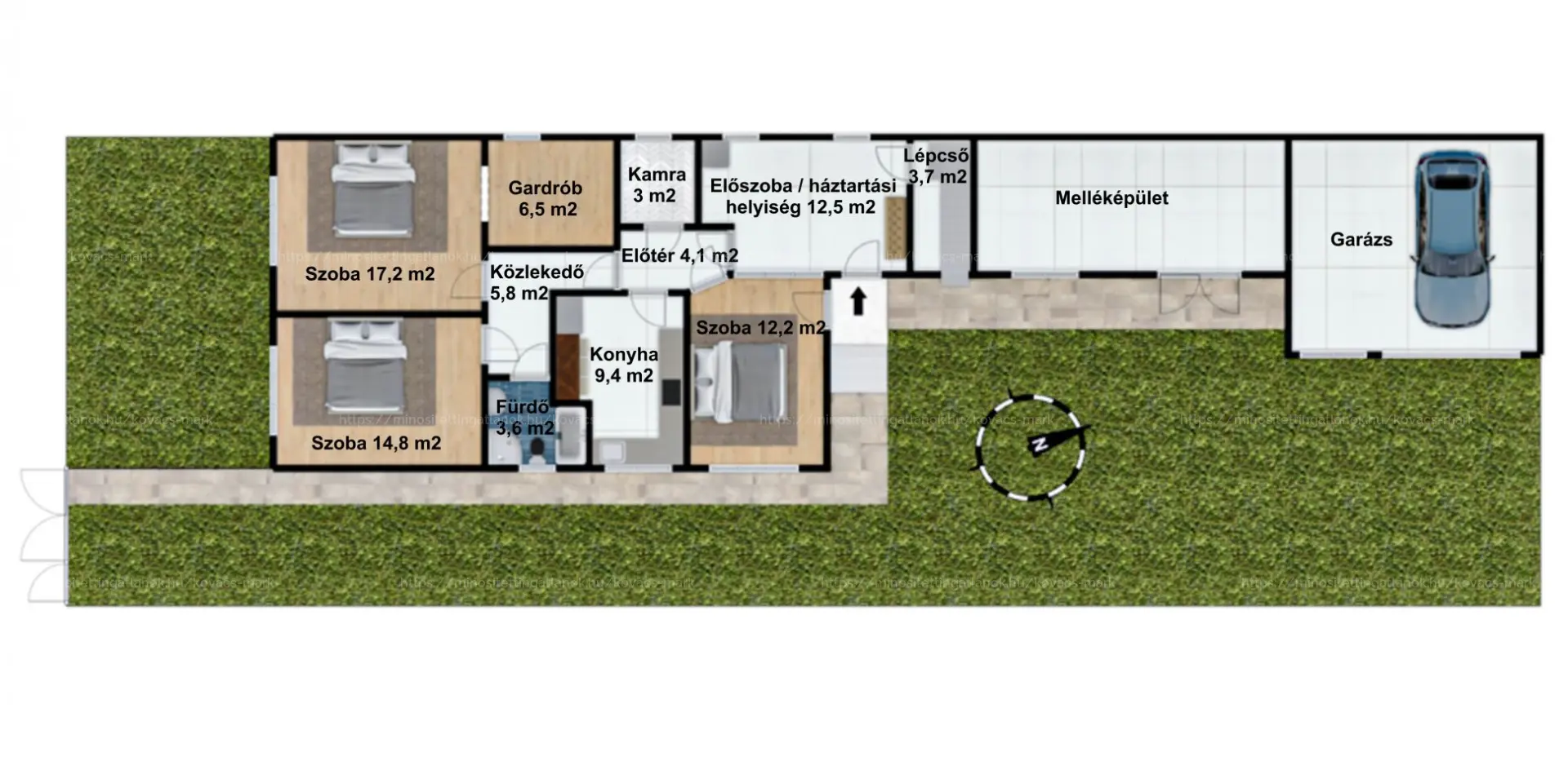 Garázzsal rendelkezik, az udvaron több autó kényelmesen elfér, az utcán a ház előtt is kényelmes a parkolás.