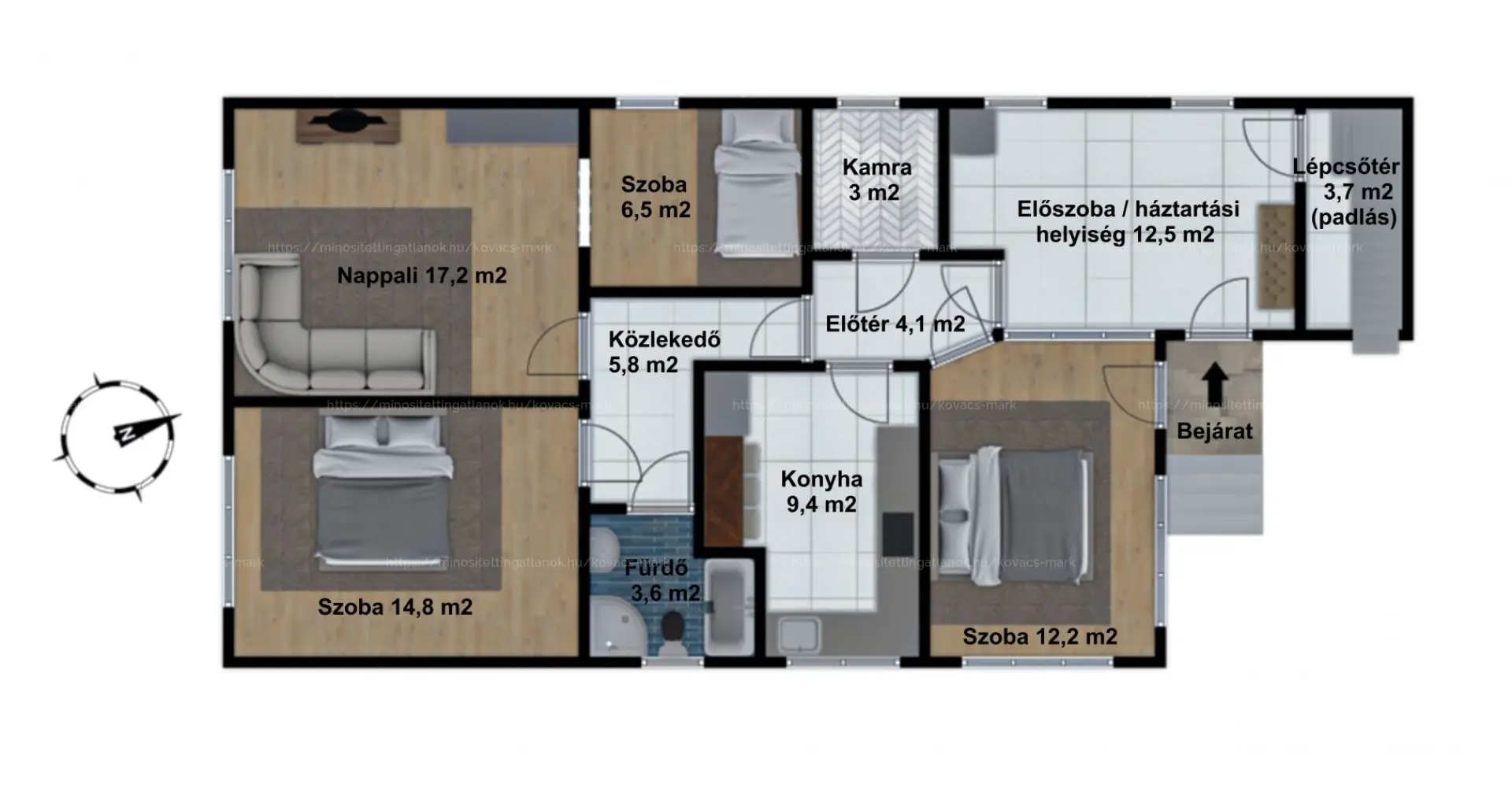 Méretéből adódóan akár 2-3 gyermekkel, illetve több generáció együttélésére is kényelmes.