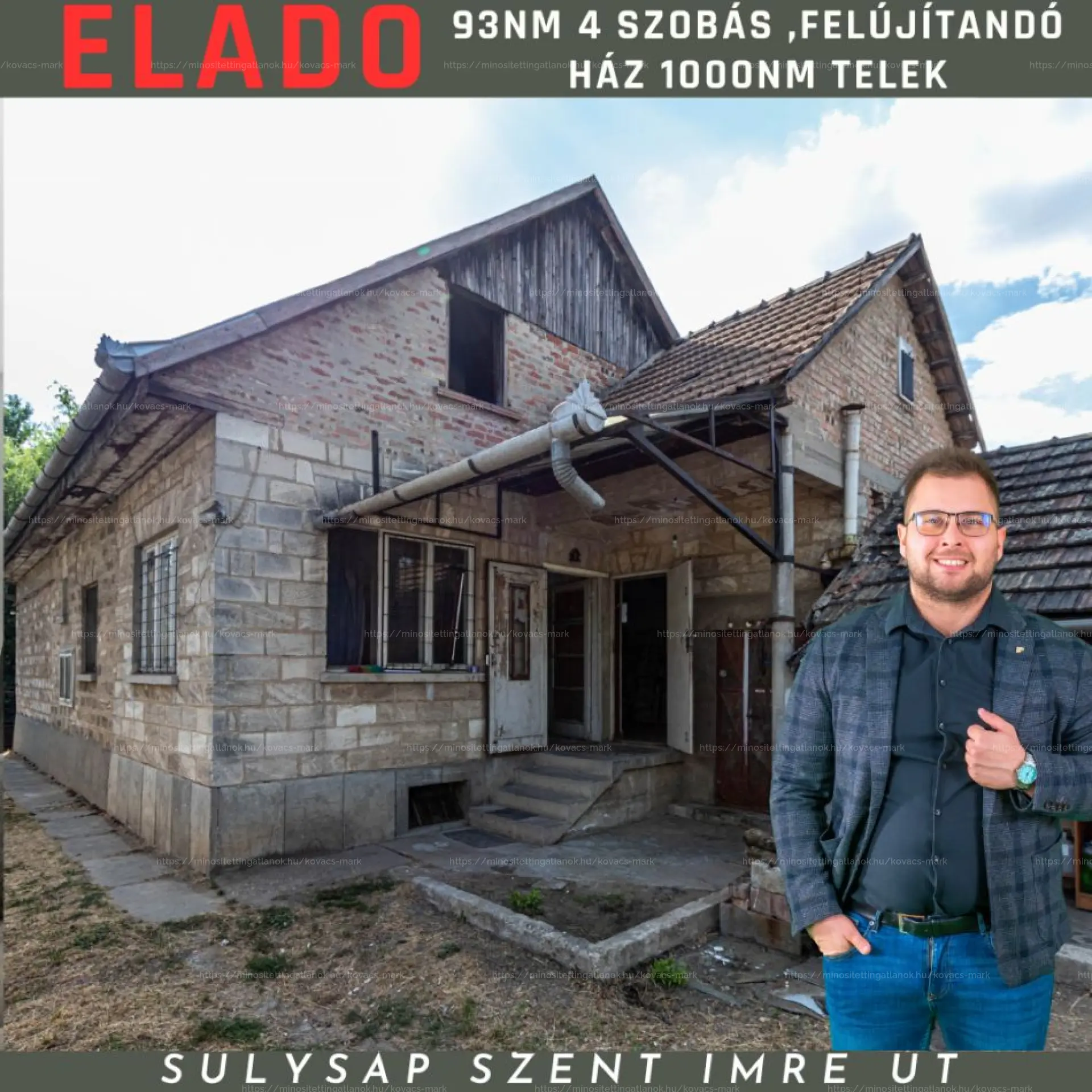 Sülysápon, Szent Imre úton 93nm-es önálló, felújítandó családi ház, melléképületekkel (Tároló,garázs) 1078nm-es telken eladó.