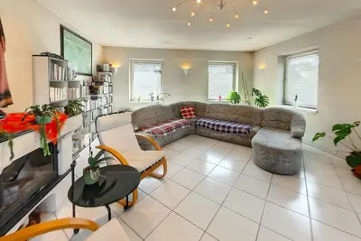 - nappalija közel 70 nm-es és az 50 nm-es intim terasszal kapcsolatos, a terasz mellett kerti grill és tábortűz hely is található